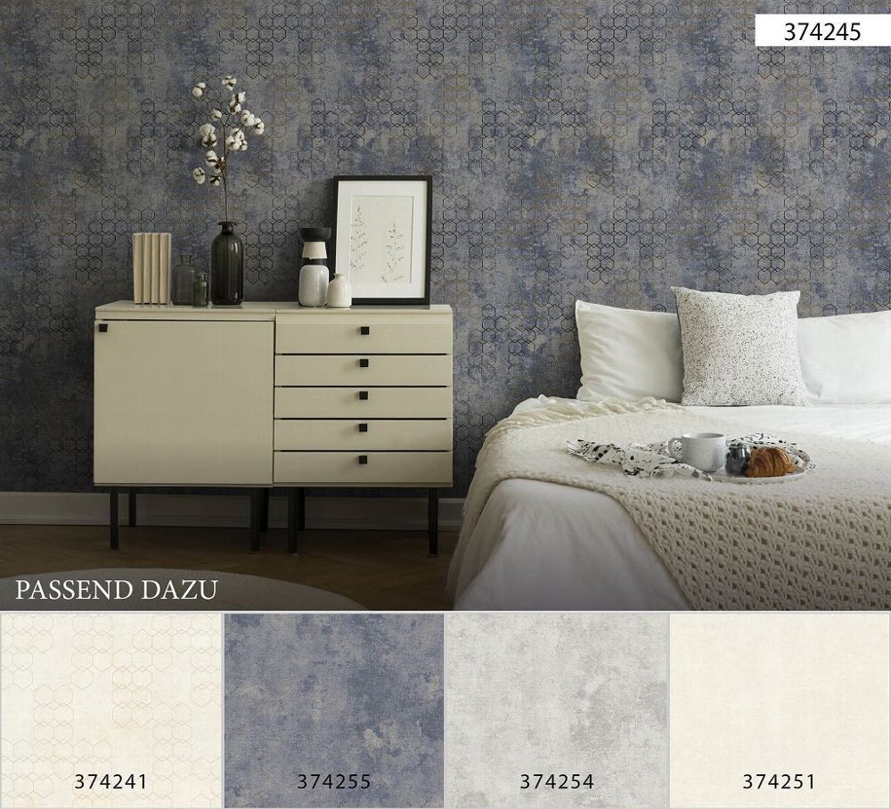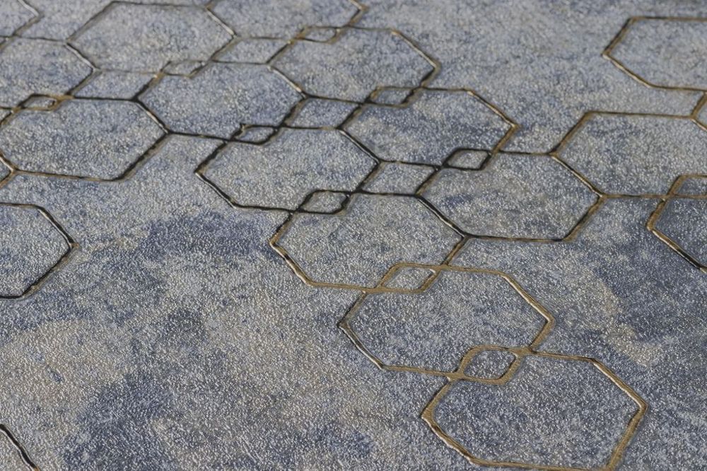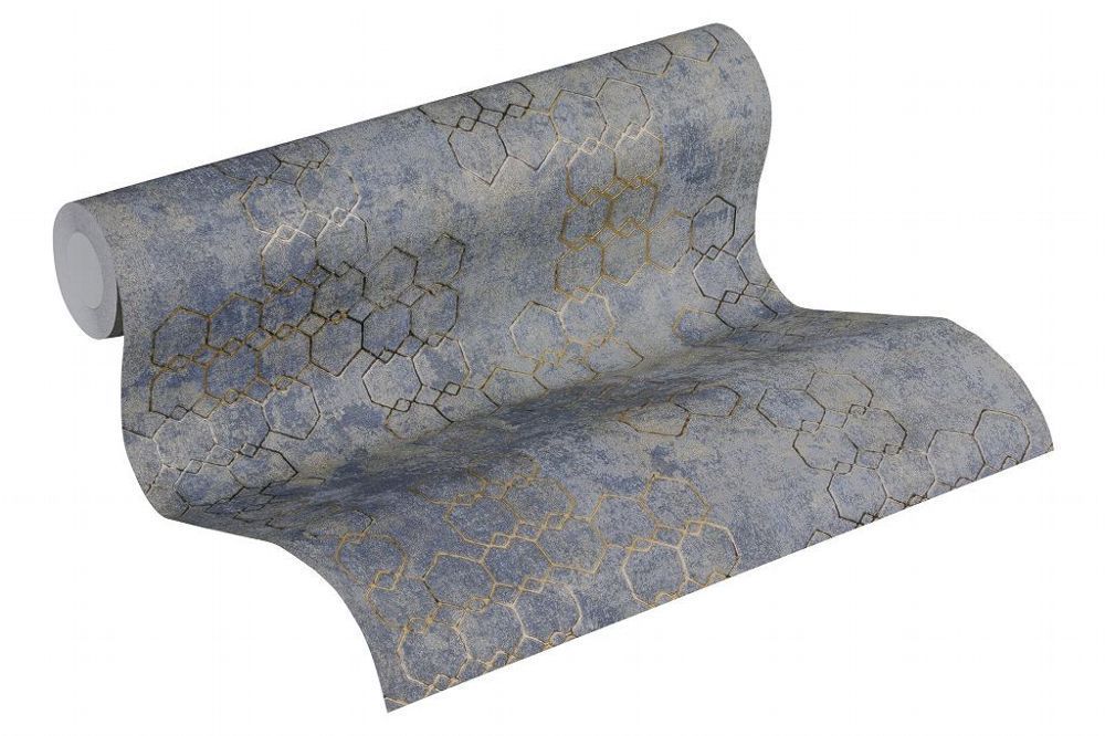 Vliestapete grafisches Hexagon Muster Beton blau grau gold metallic 37424-5