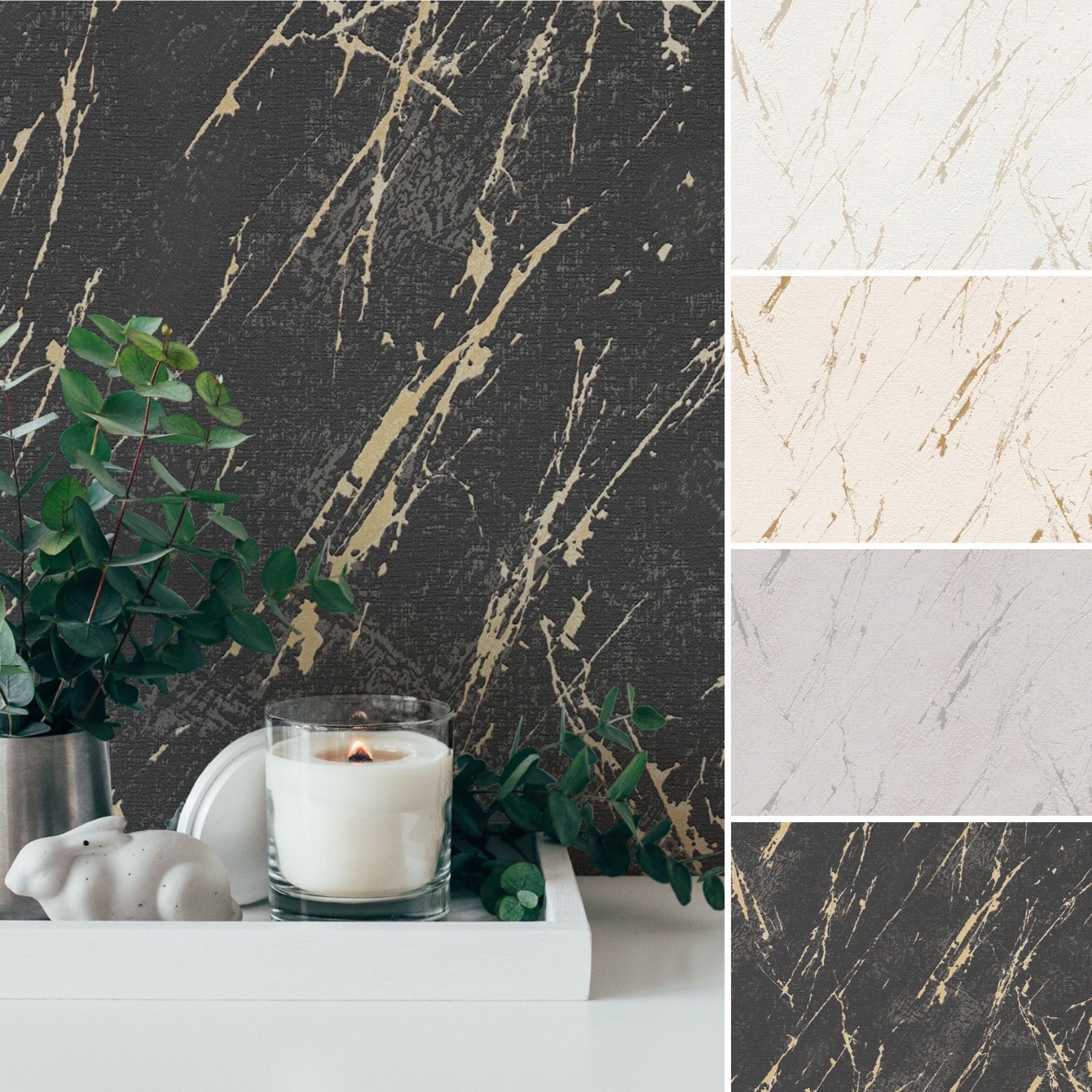 Vliestapete Marmor Stein Optik Struktur Tapete versch. Farben silber gold metallic