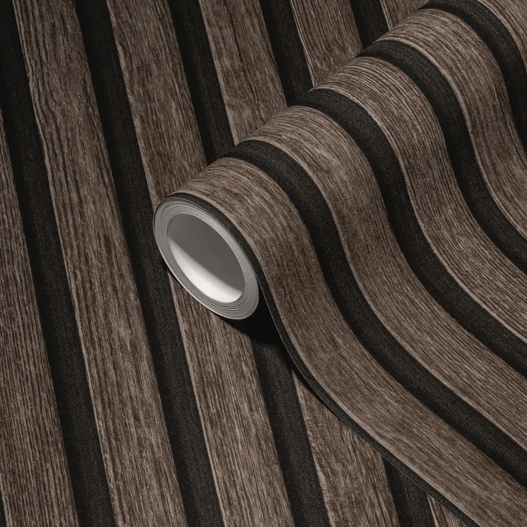 Vliestapete Skandinavisch Natur Holz Akustikpaneele Lamellenwand braun schwarz 391093