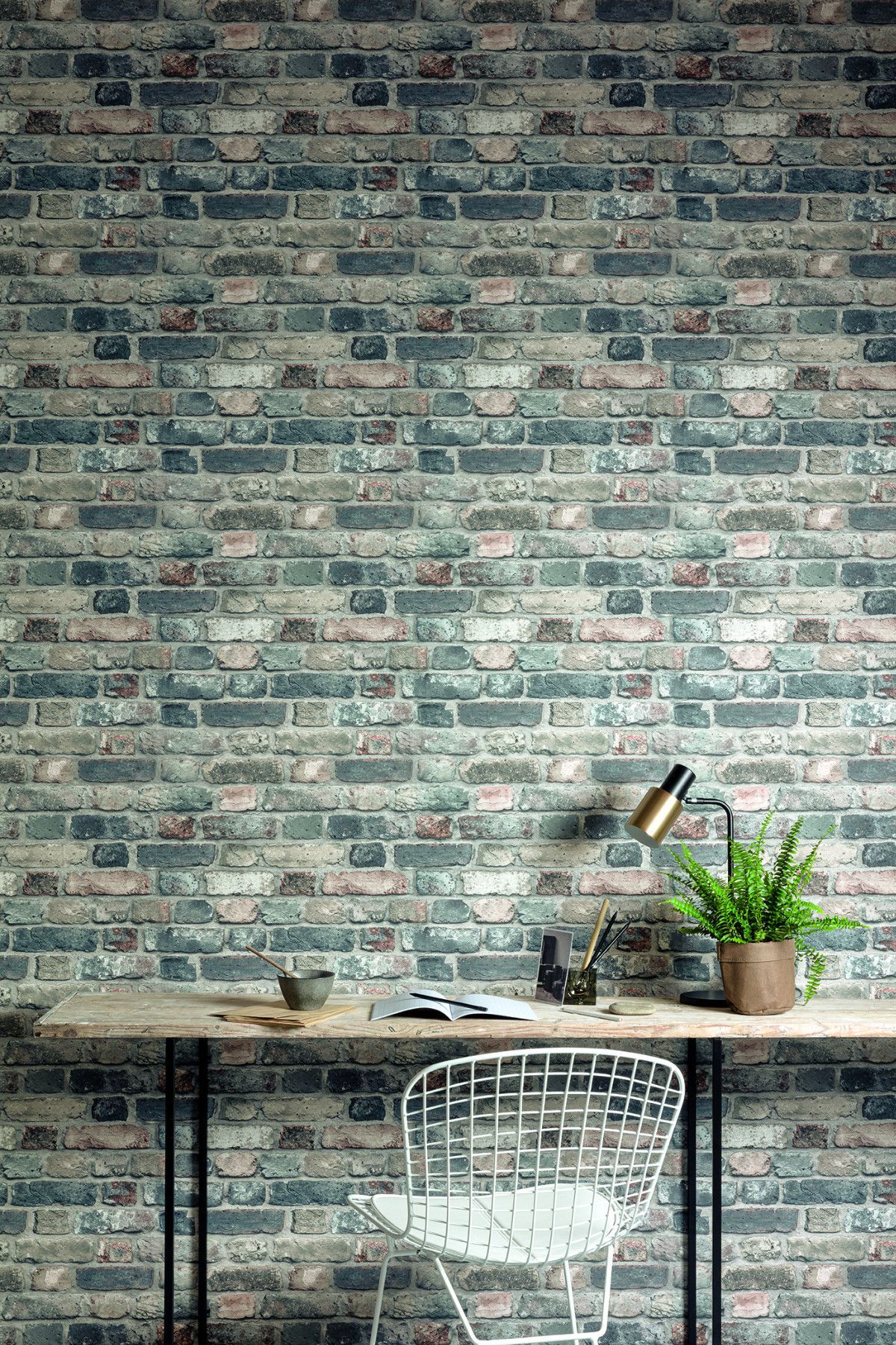 Vliestapete Ziegelstein Bruchstein anthrazit grau braun verwittert WL2204