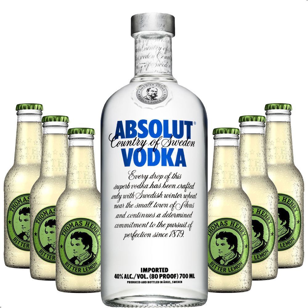Absolut Vodka Lemon Set - Absolut Vodka 0,7l 700ml (40% Vol) + 6x Thomas Henry Bitter L