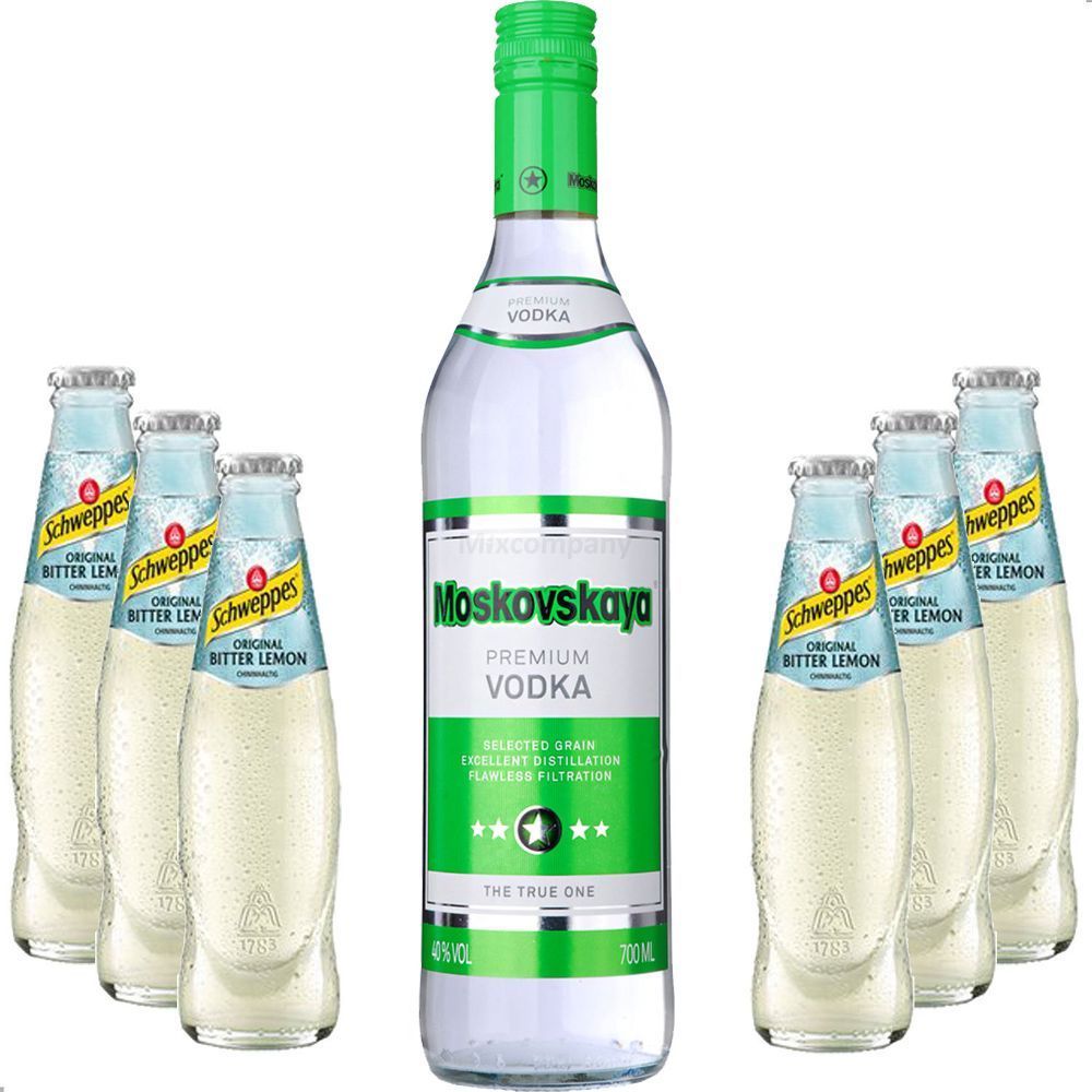Moskovskaya Vodka Lemon Set - Moskovskaya Vodka 0,5l (40% Vol) + 6x Schweppes Bitter Lemon