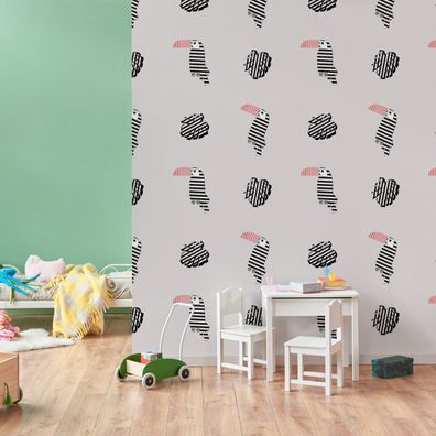 • 10m VLIES TAPETE Rolle Kinderzimmer Exotische Vögel Tukane Dschungel XXL 3444