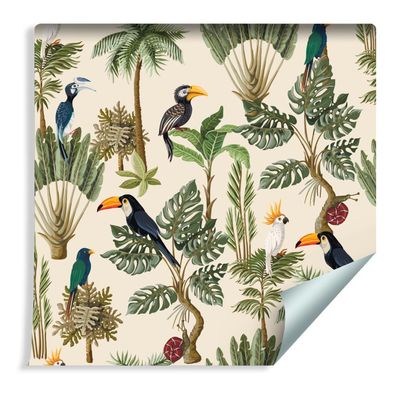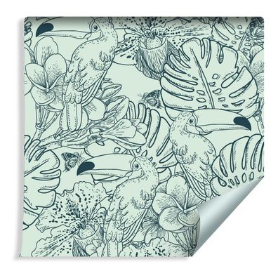 • 10m VLIES TAPETE Rolle Vögel Tukane Palmen Pflanzen Monstera Exotisch XXL 1873