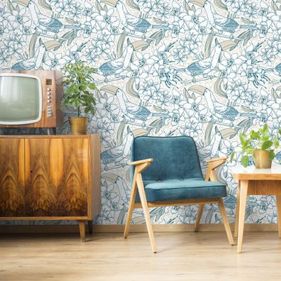 • 10m VLIES TAPETE Rolle Ornamente Vintage Stil Voegel Pflanzen XXL 1011