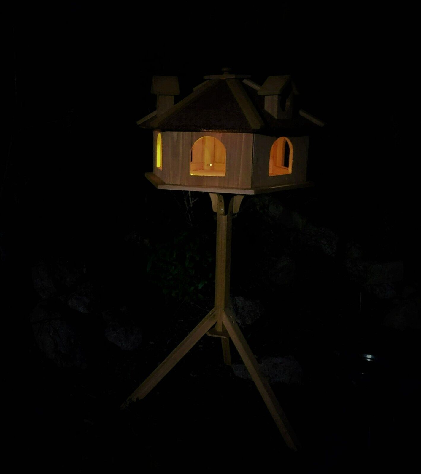 Vogelhaus Alpenzauber L Licht + Ständer Vogelfutterhaus Futterhaus Vogel Solar