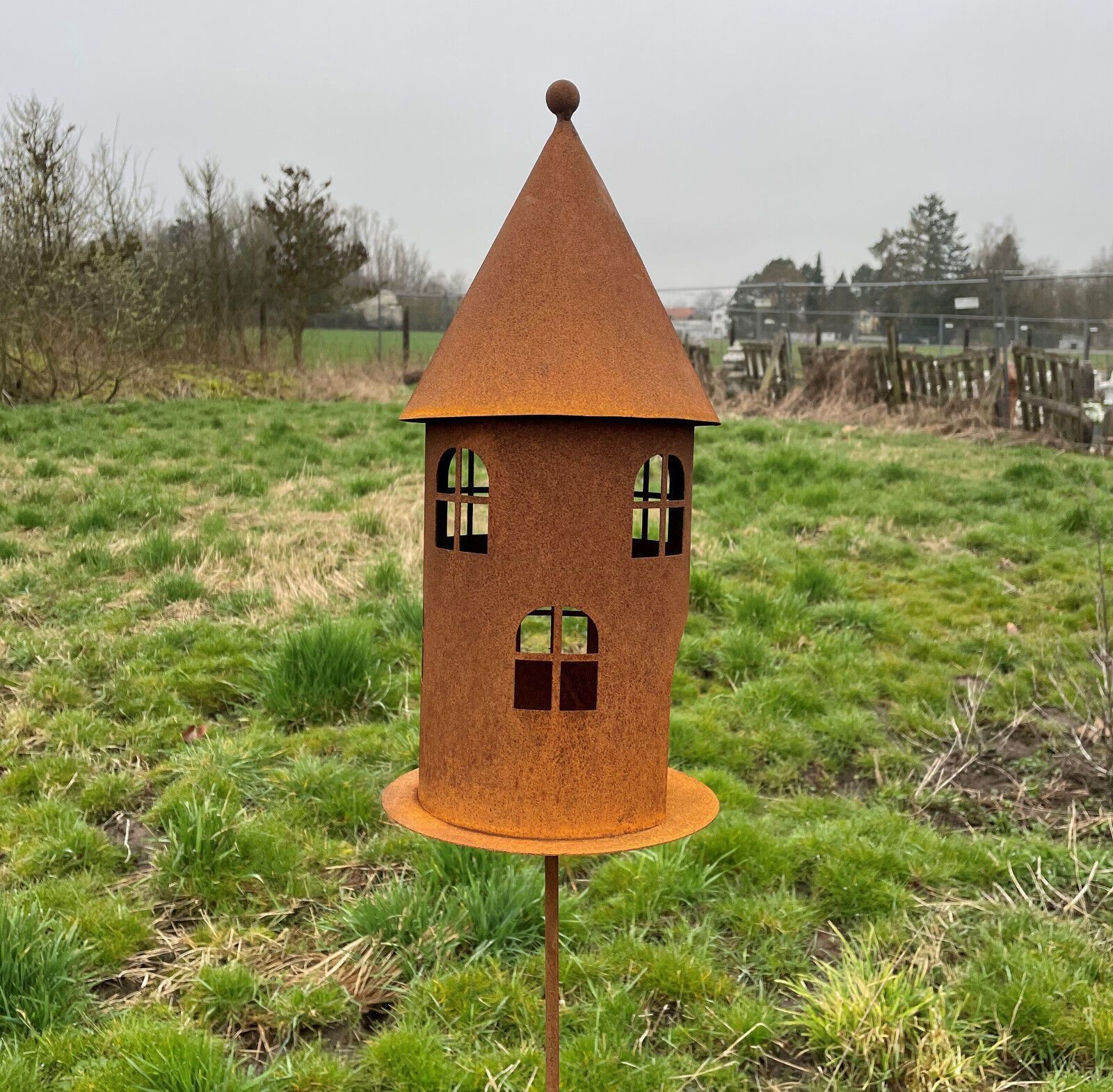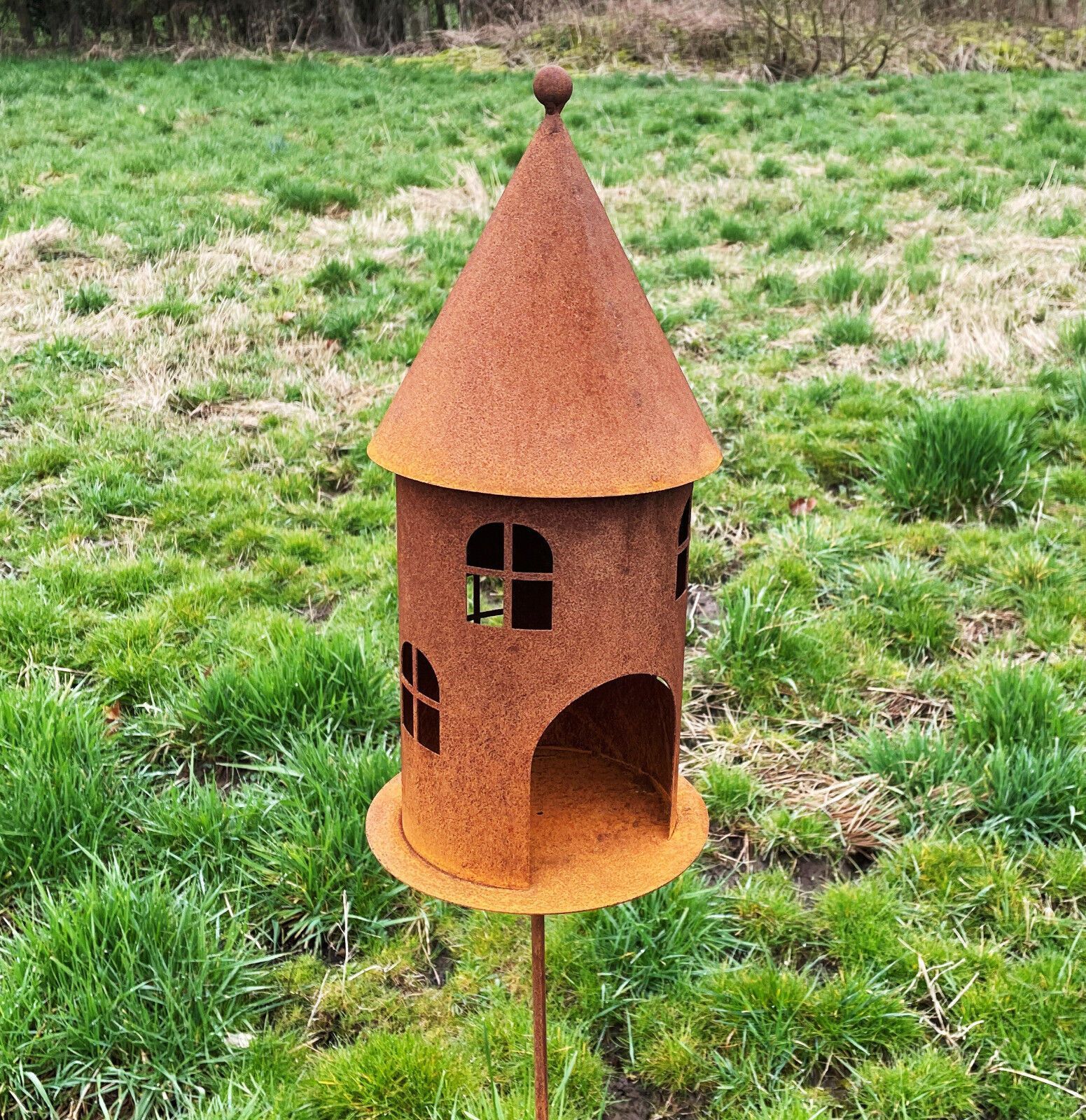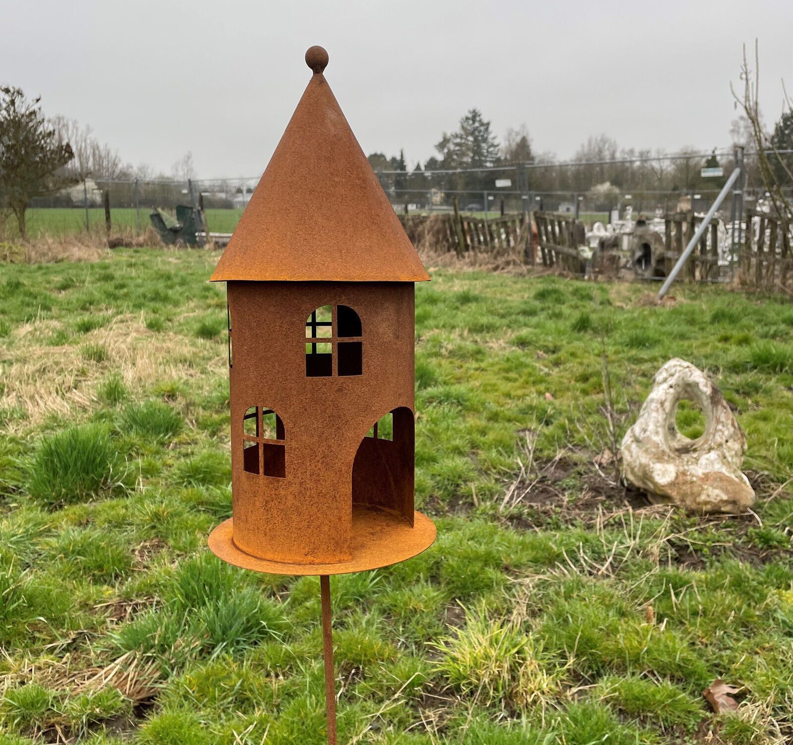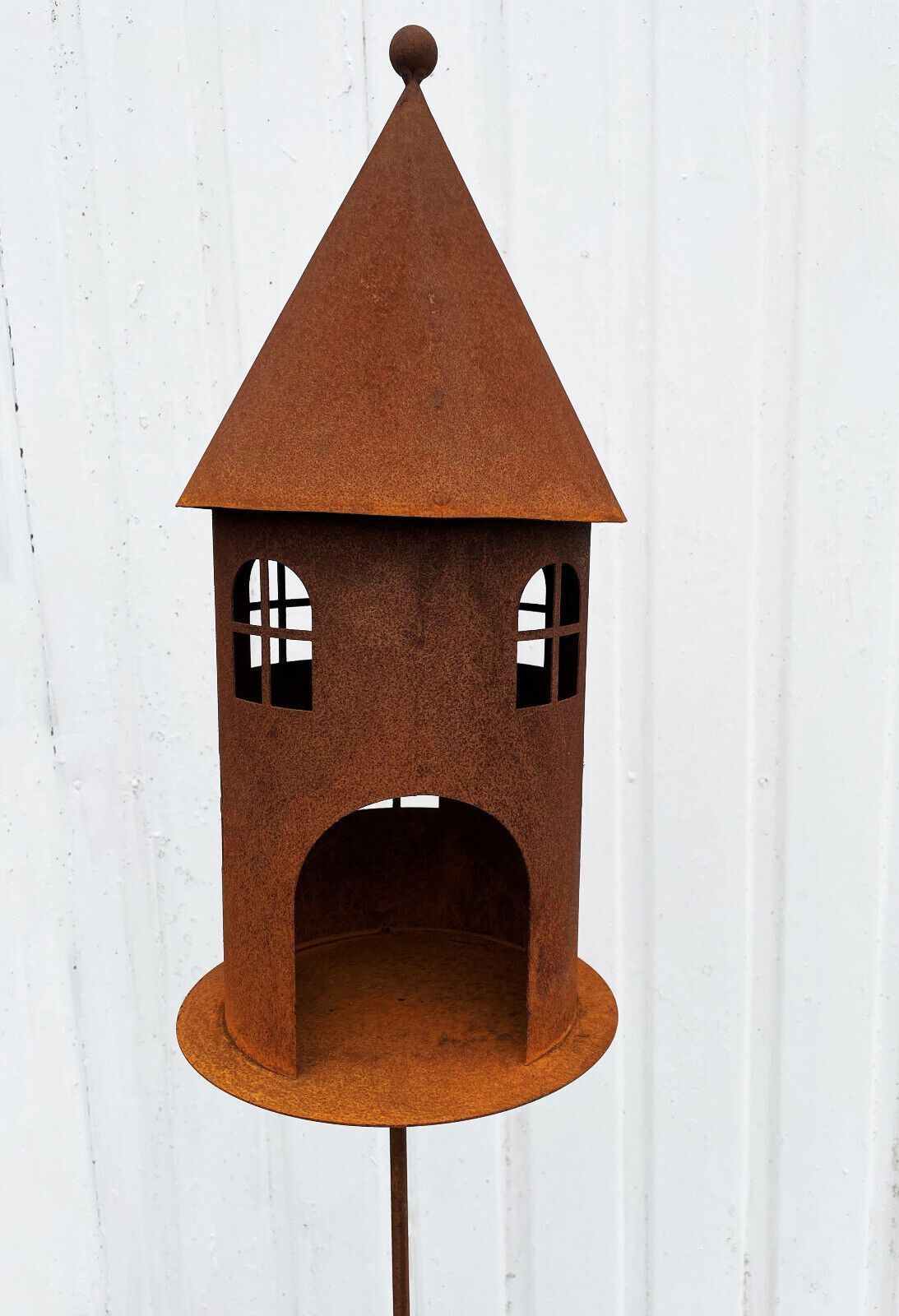 Vogelhaus Futterhaus zum Beleuchten 42x20cm + Stab Gartenstecker Edelrost Deko