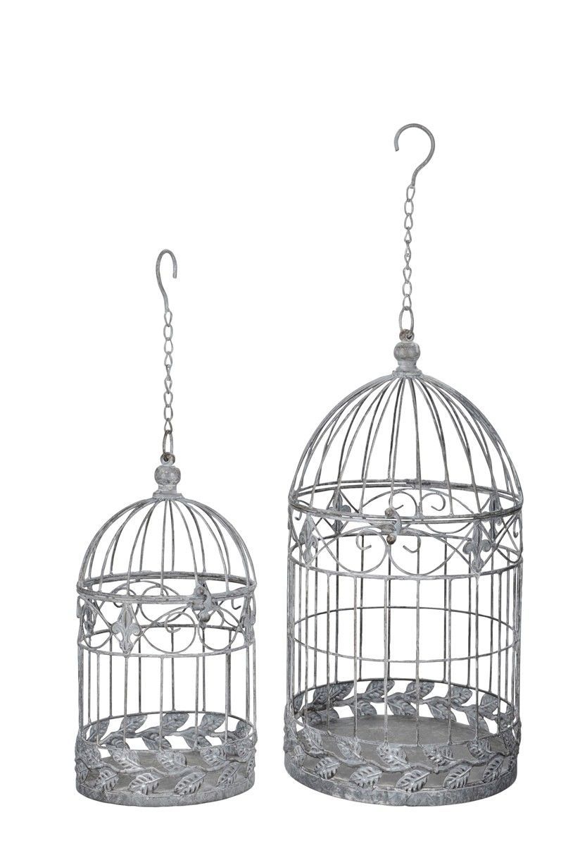 Vogelkäfig Pflanz Korb Hänge Blumenkäfig Metall grau H39cm + 53cm Garten