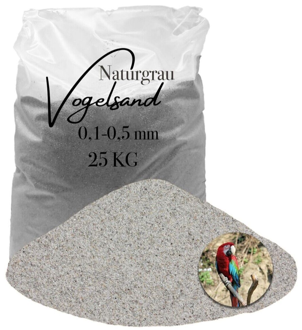 Vogelsand 0,1-0,5 mm grau - gerundet, staubfrei, ohne Grit - 25 kg feuergetrocknet