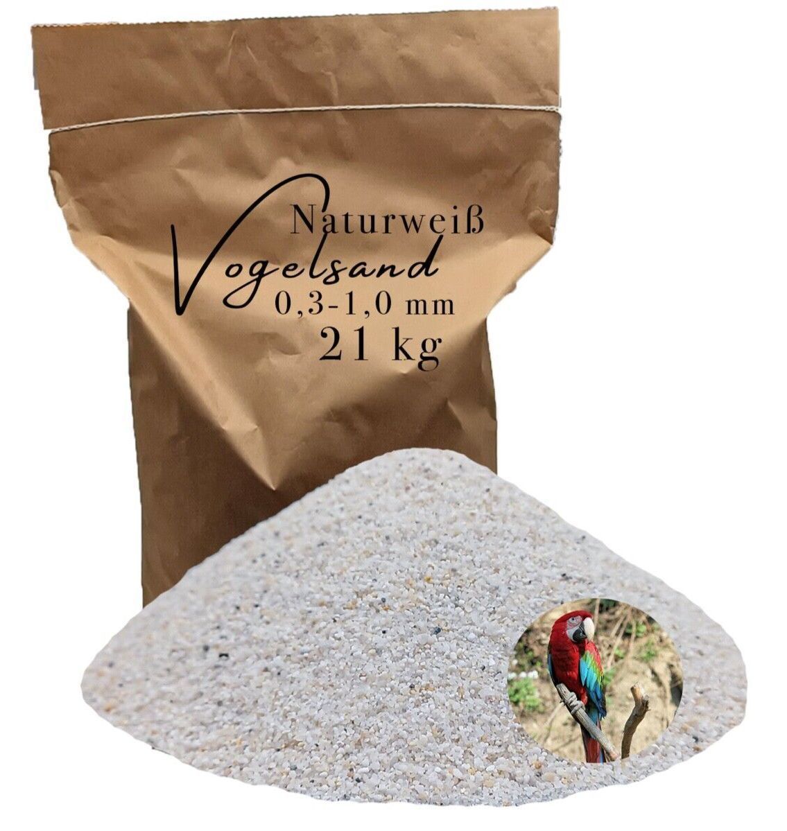 Vogelsand 0,3-1,0mm 21 kg weiß keimfrei ohne Zusatzstoffe wie Grit und Anis