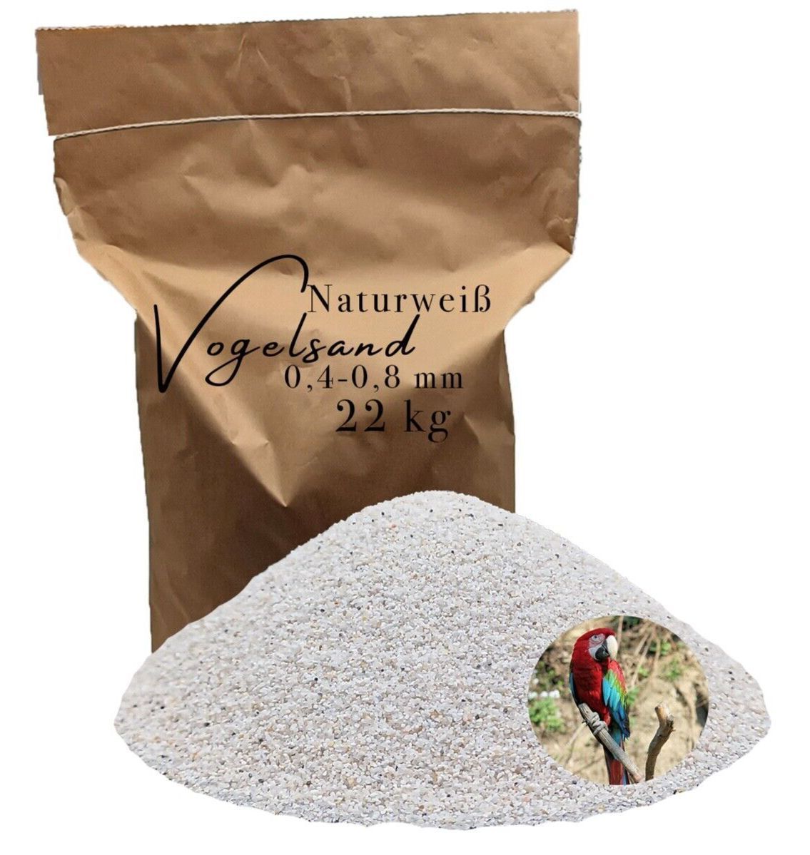 Vogelsand 0,4-0,8mm 22kg weiß ohne Zusatzstoffe wie Anis und Grit keimfrei
