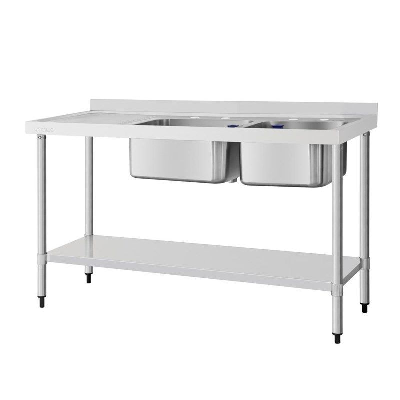 Vogue Edelstahlspüle Doppelwaschbecken Abtropffläche Links 150X60Cm