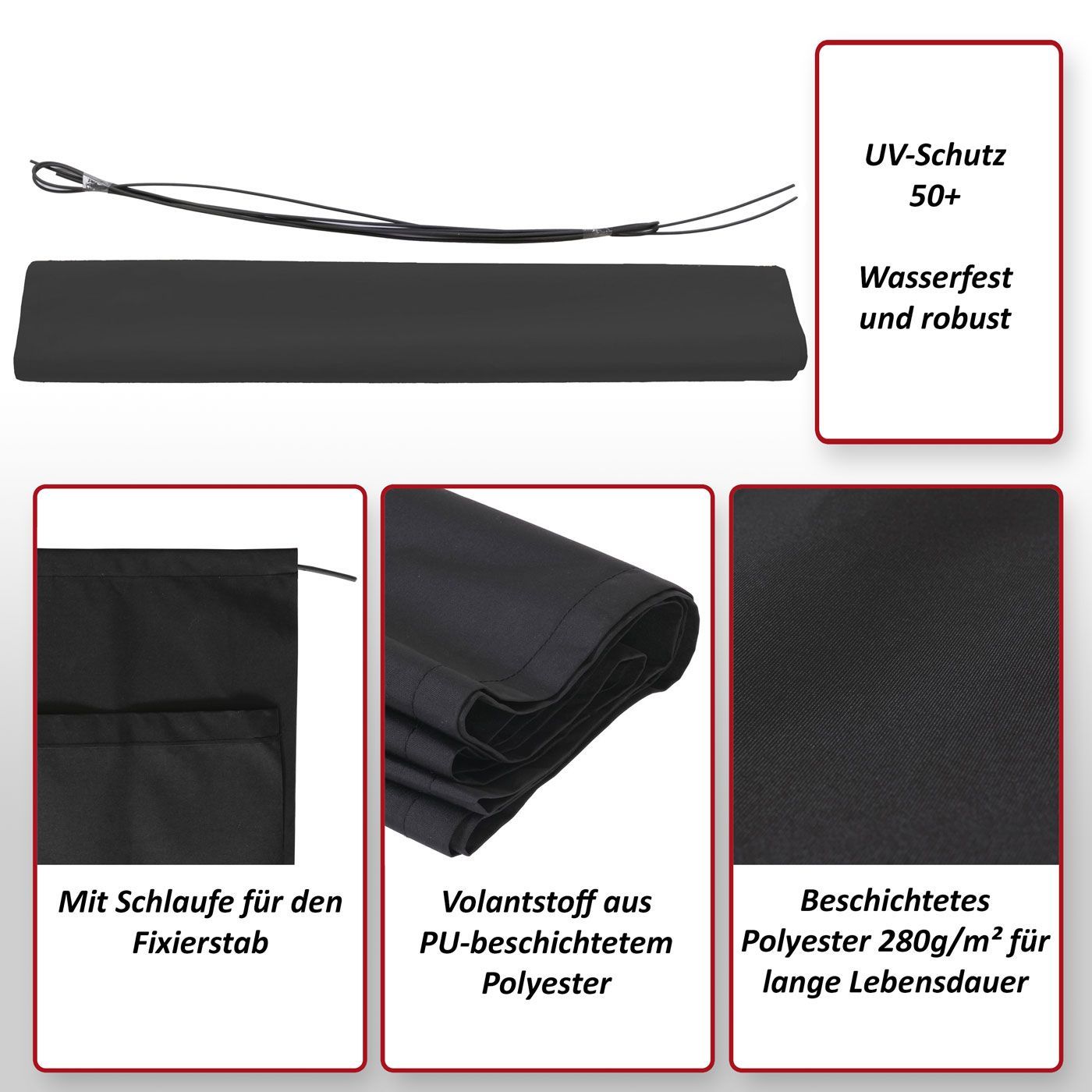 Mendler Volant für elektrische Vollkassetten-Markise T124, 4,5x3m ausfahrbarer Volant