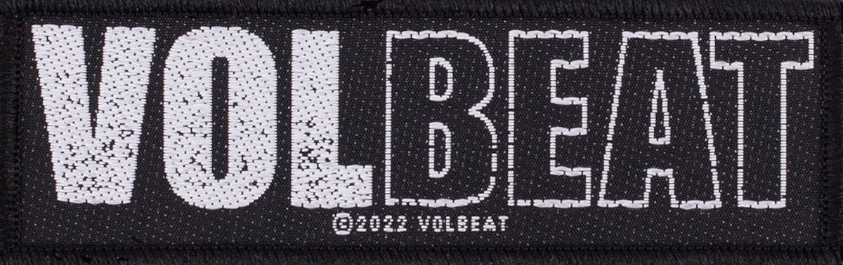 Volbeat Patch in 10 × 3,5 cm – schwarzer Band-Aufnäher mit weißem Schriftzug