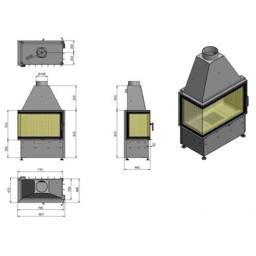 Volcano 2LAT Eck-Kamineinsatz Links 9kW
