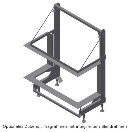 Ohne Tragrahmen, Mit hängendem Tragrahmen, Mit selbststehendem Tragrahmen und Mit Tragrahmen + Blendrahmen