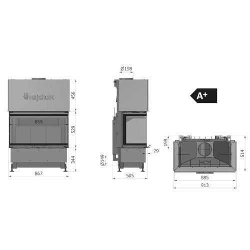 Volcano 3BTH Dreiseitiger Panorama Kamineinsatz 11kw