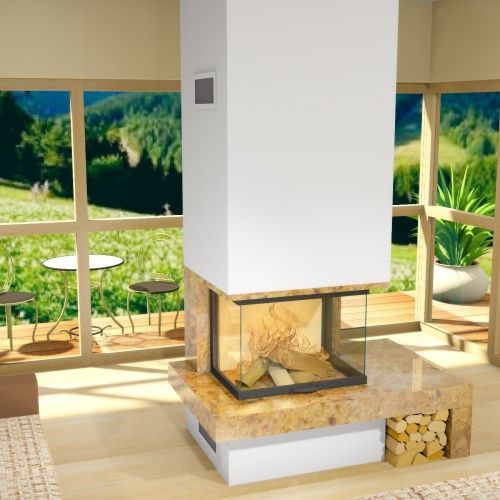 Volcano 3PLH Eckkamineinsatz 11kW Dreiseitig Verglaste Hebetür