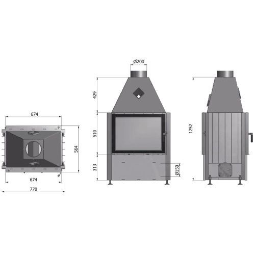Volcano FDT Warmluft-Tunnelkamineinsatz 11kW Rahmenlose Tür