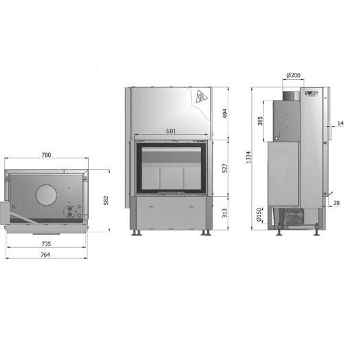 Volcano WTH18 Wasser-Kamin 18kW rahmenlose Hebetür Doppelverglast