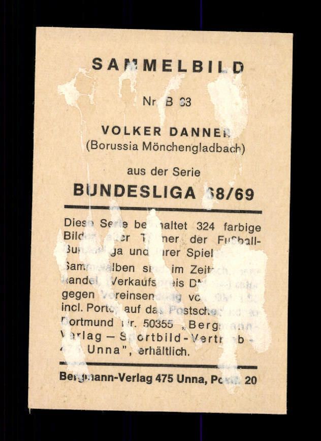 Volker Danner Borussia Mönchengladbach Bergmann Sammelbild 1968-69 Nr. B83