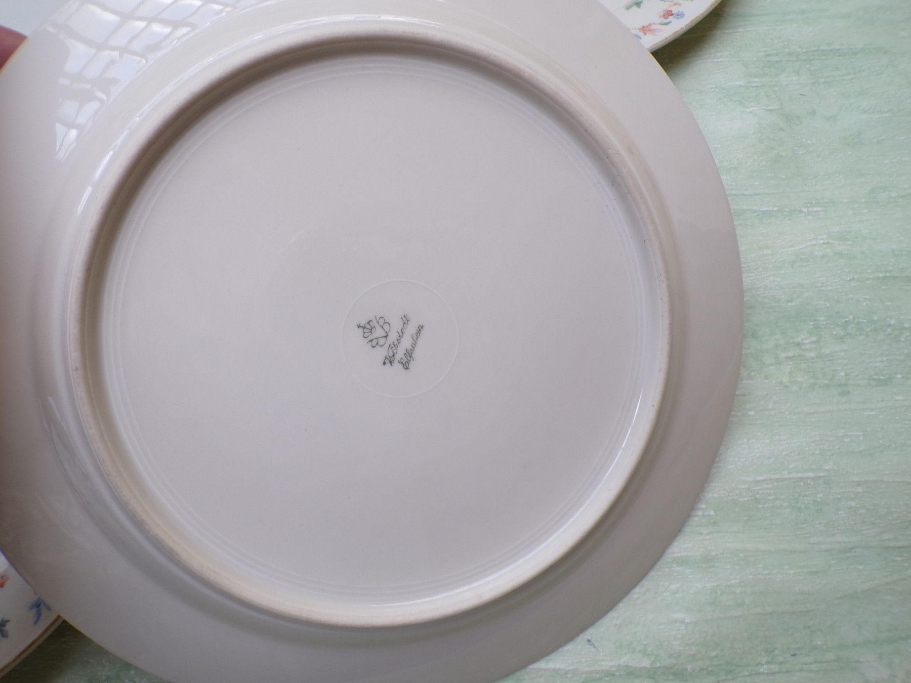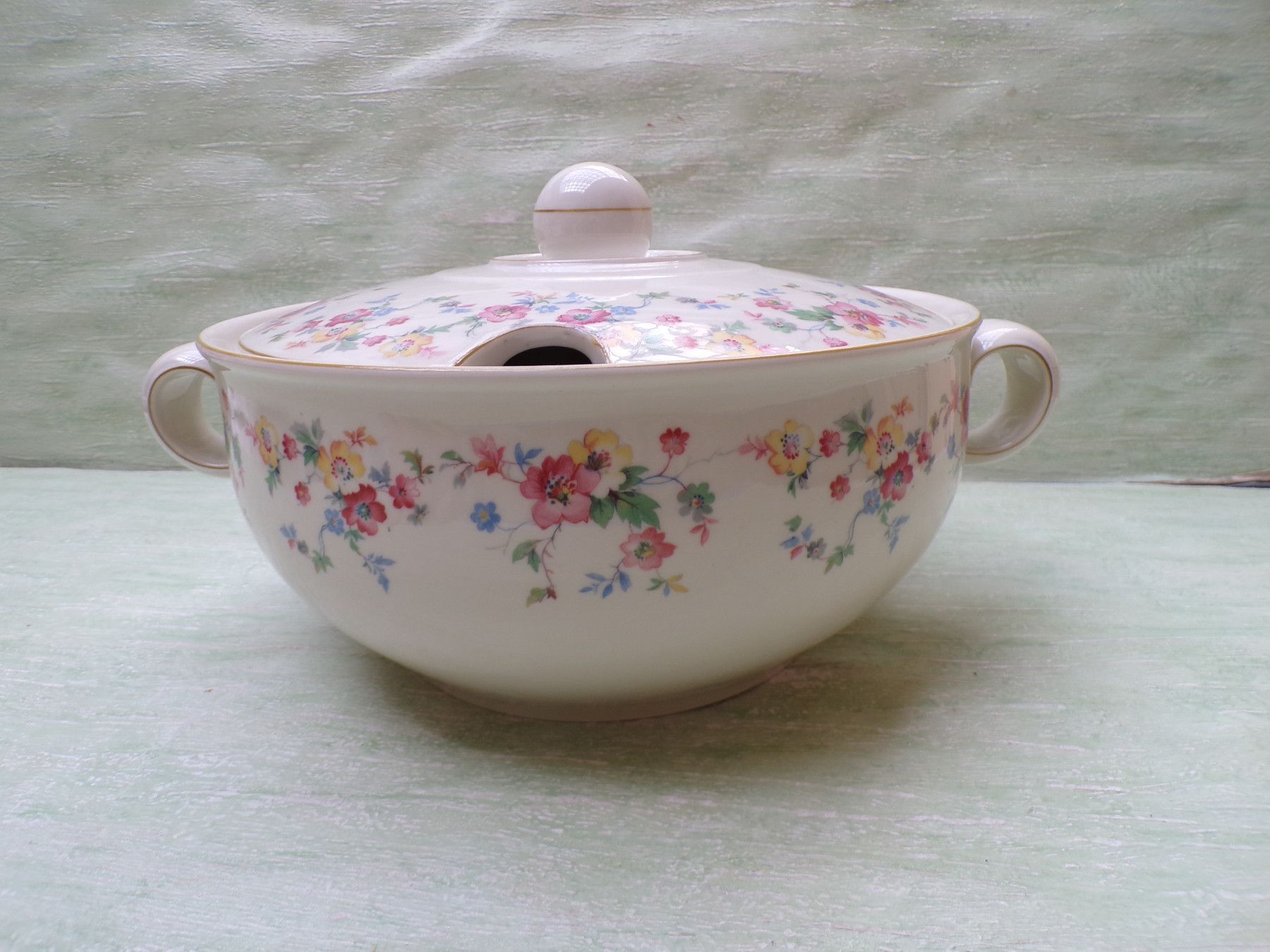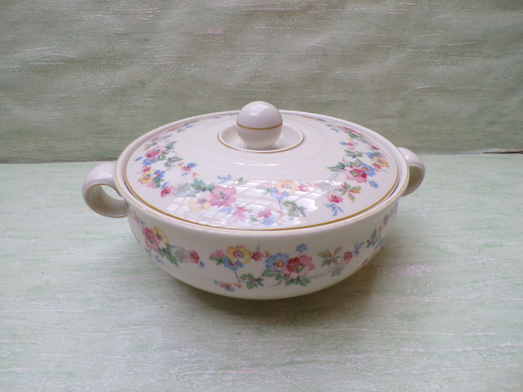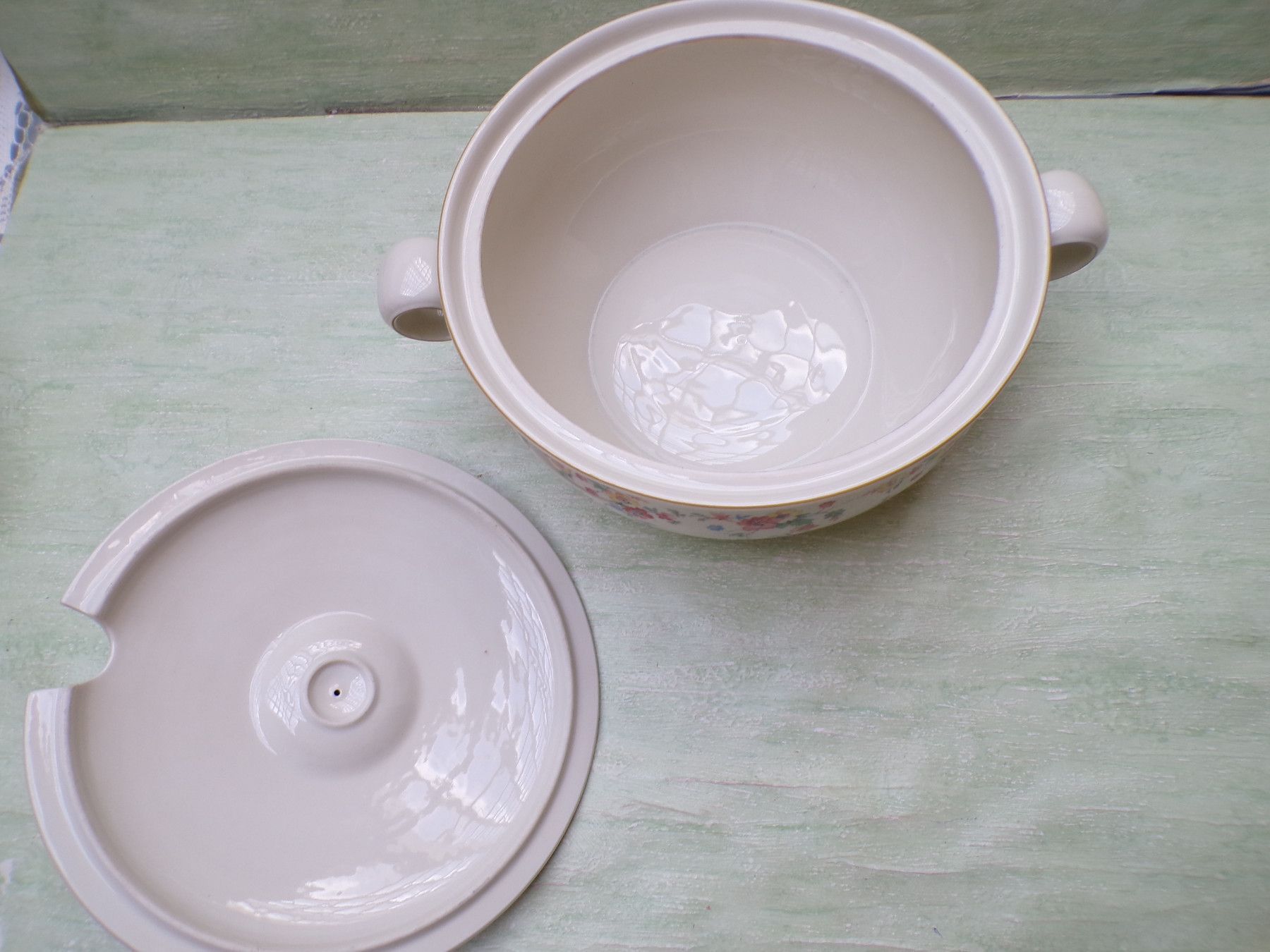 5 Kuchenteller, 6 Suppenteller, 4 Eßteller, Terrine 27x11cm, Suppenterrine 33x15cm, Fleischplatte 39x23,5cm, Schüssel 24,5x27,5x6cm