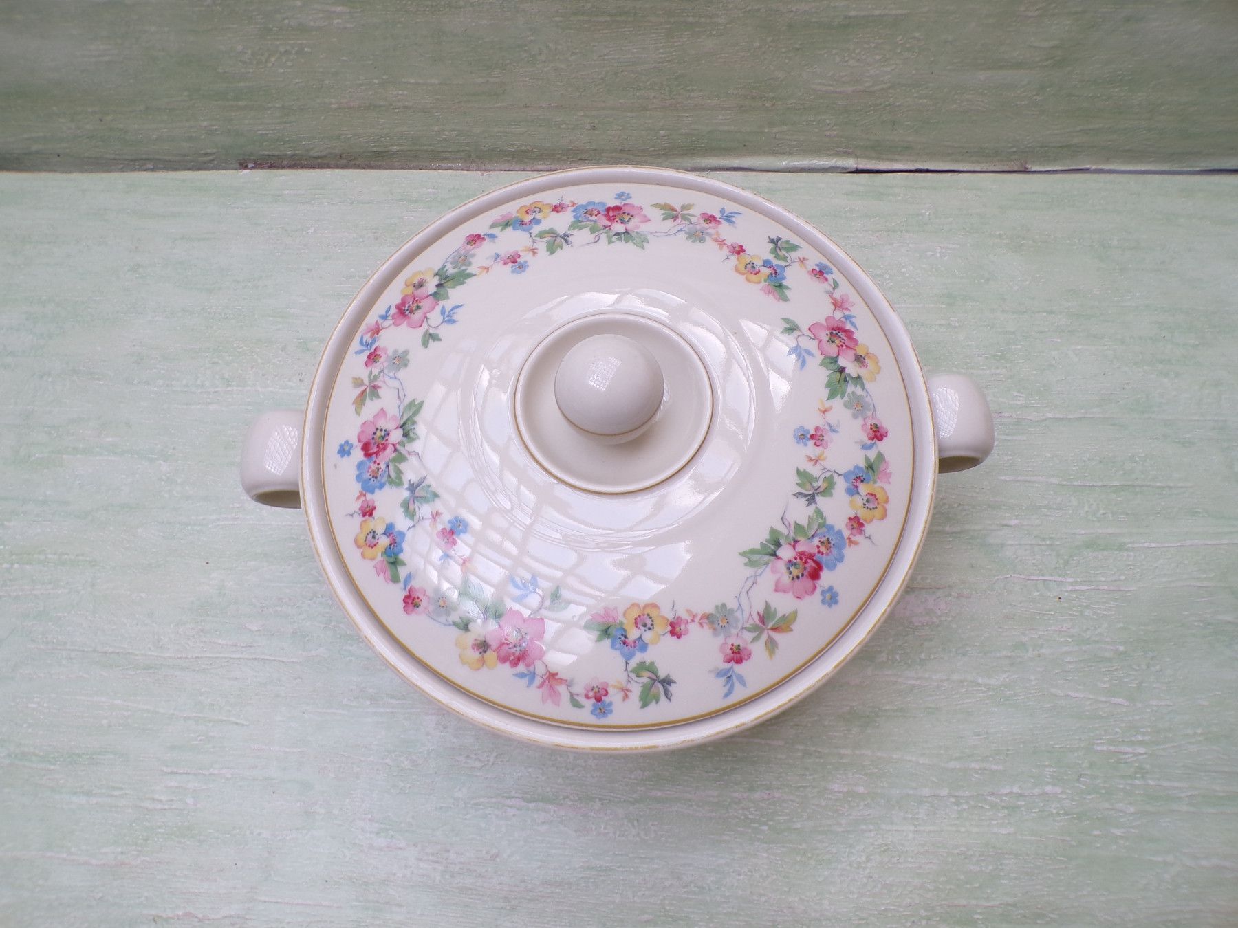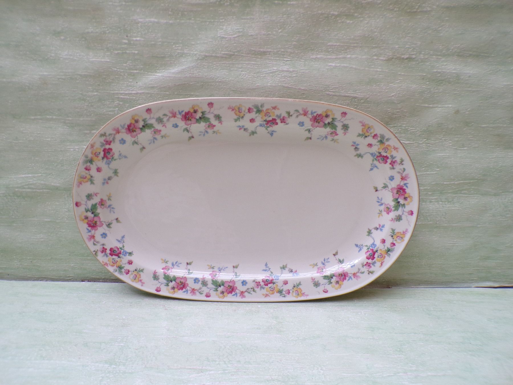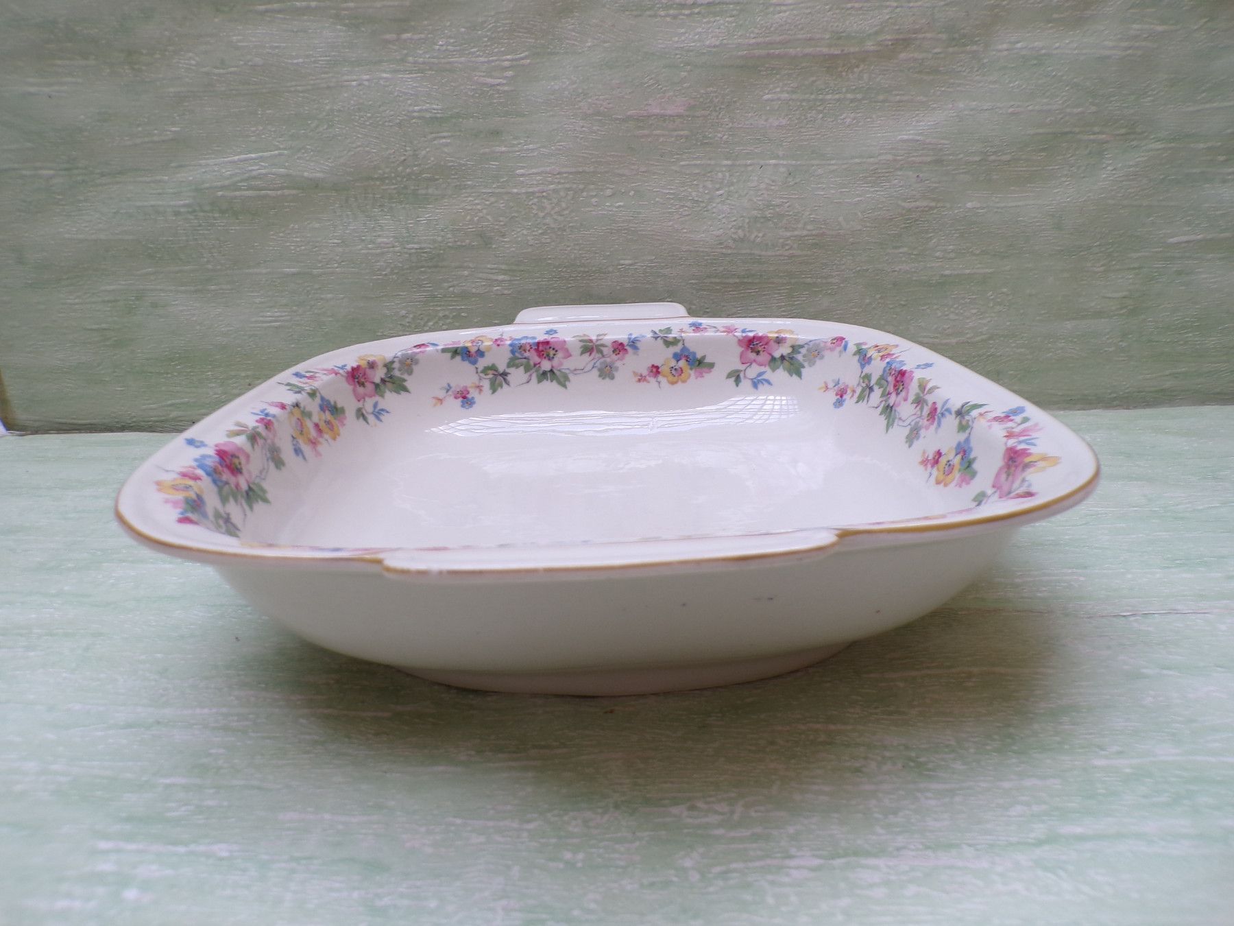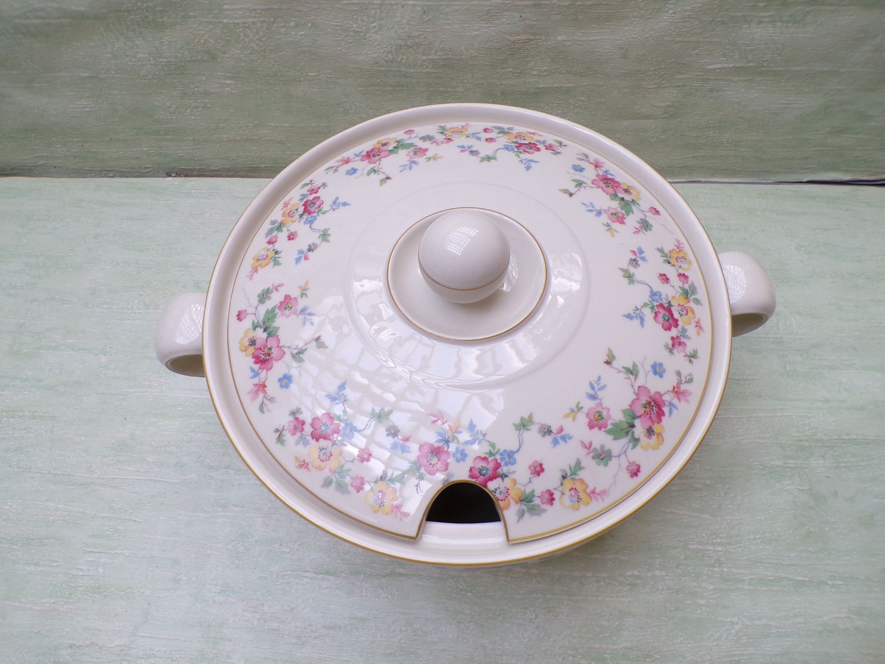 5 Kuchenteller, 6 Suppenteller, 4 Eßteller, Terrine 27x11cm, Suppenterrine 33x15cm, Fleischplatte 39x23,5cm, Schüssel 24,5x27,5x6cm