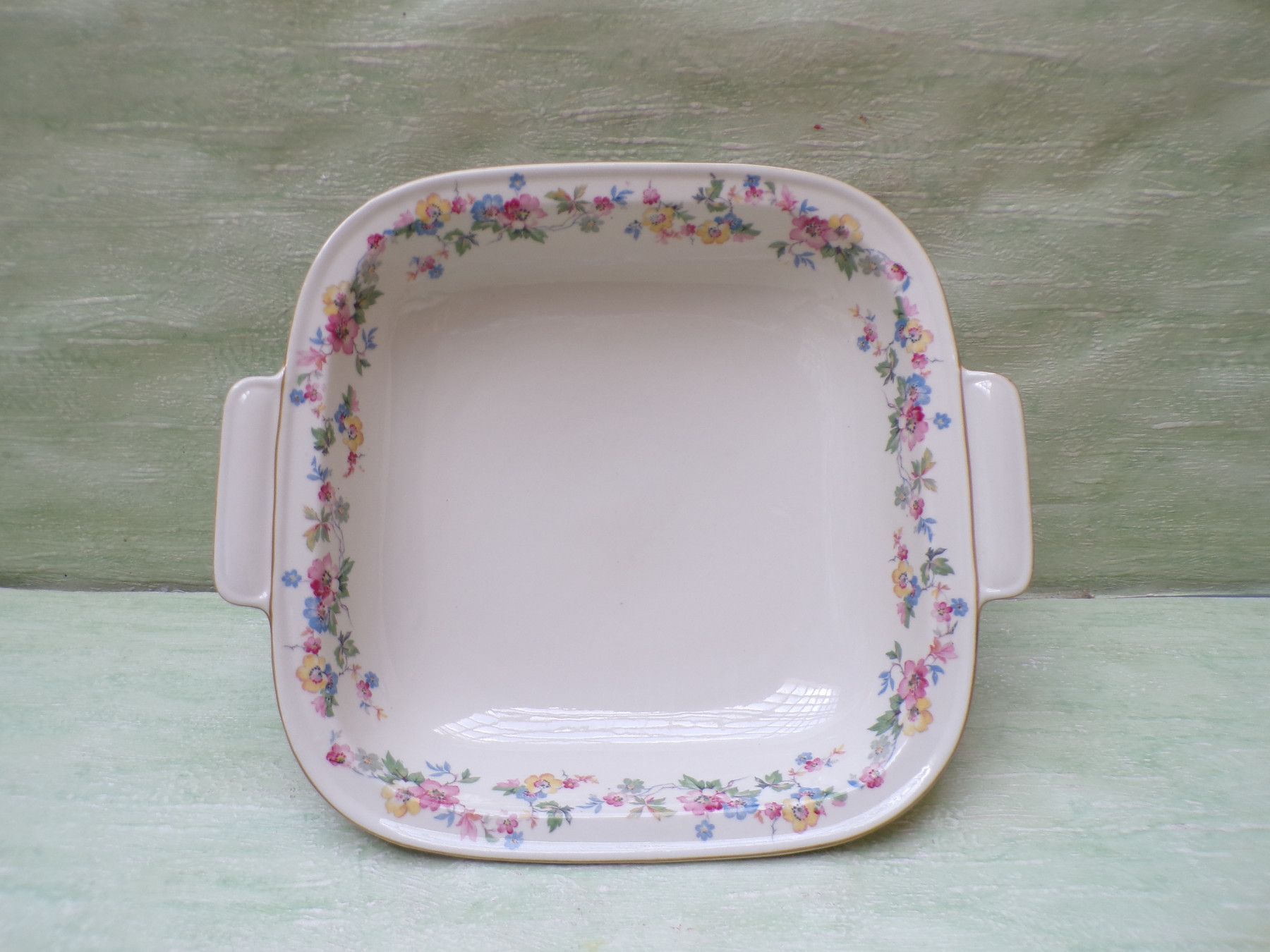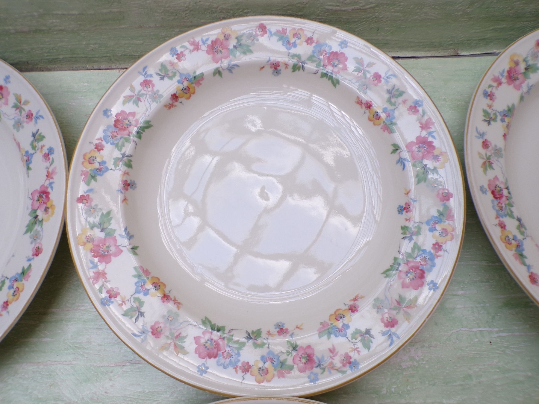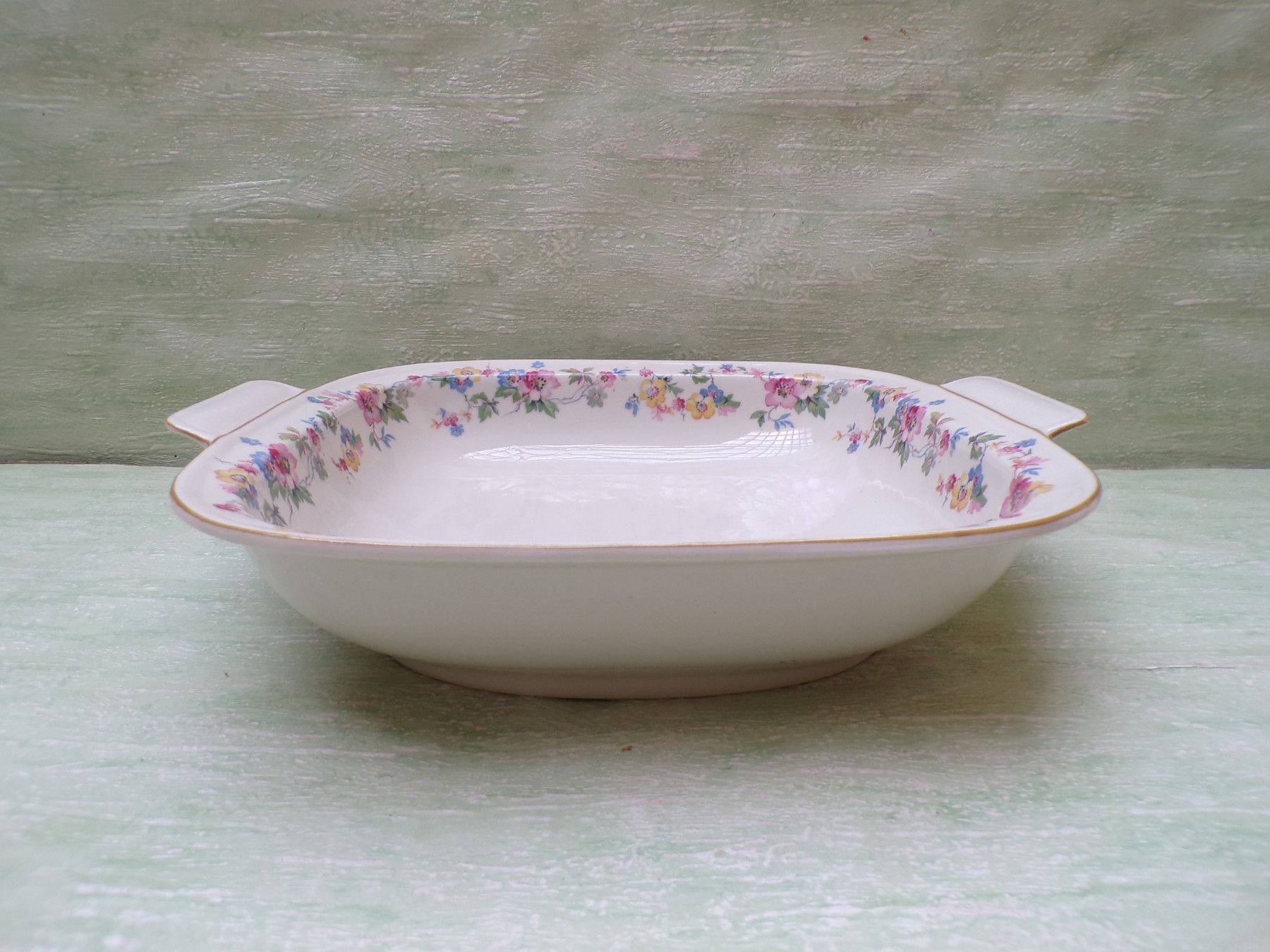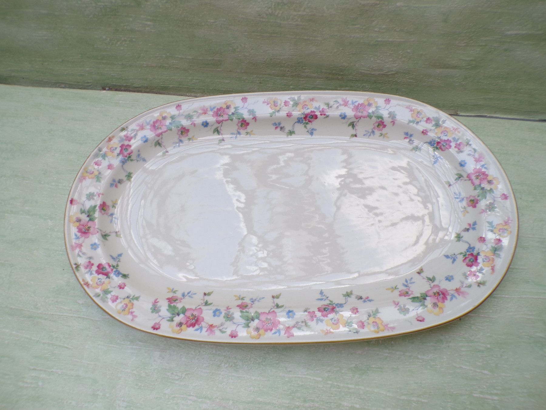5 Kuchenteller, 6 Suppenteller, 4 Eßteller, Terrine 27x11cm, Suppenterrine 33x15cm, Fleischplatte 39x23,5cm, Schüssel 24,5x27,5x6cm
