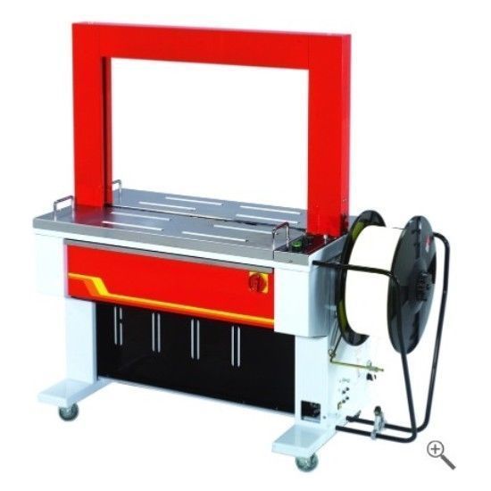 vollautomastische Umreifungsmaschine für hohe Ansrüche ZUVERLÄSSIGE UND ROBUSTE MECHANIK Ein sehr robust designterMechanismus und hoher technischer Standard gewährleistet eine lange Lebensdauer der Maschine.Konventionelle Endschalter sind durch Magnetschalter ersetzt. AUTOMATISCHER BANDAUSWURF Loop-