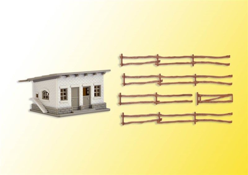 Vollmer Vollmer 47709, N Zubehör Bausatz, Stall mit Zaun 1:160