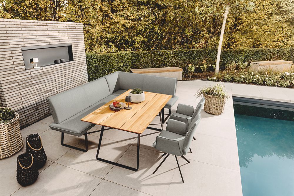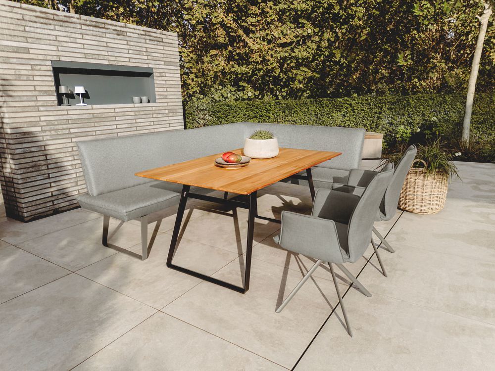 Vollpolster-Garteneckbank Elbax 235x170 Bezug Alpine Grau Gestell Alu Anthrazit