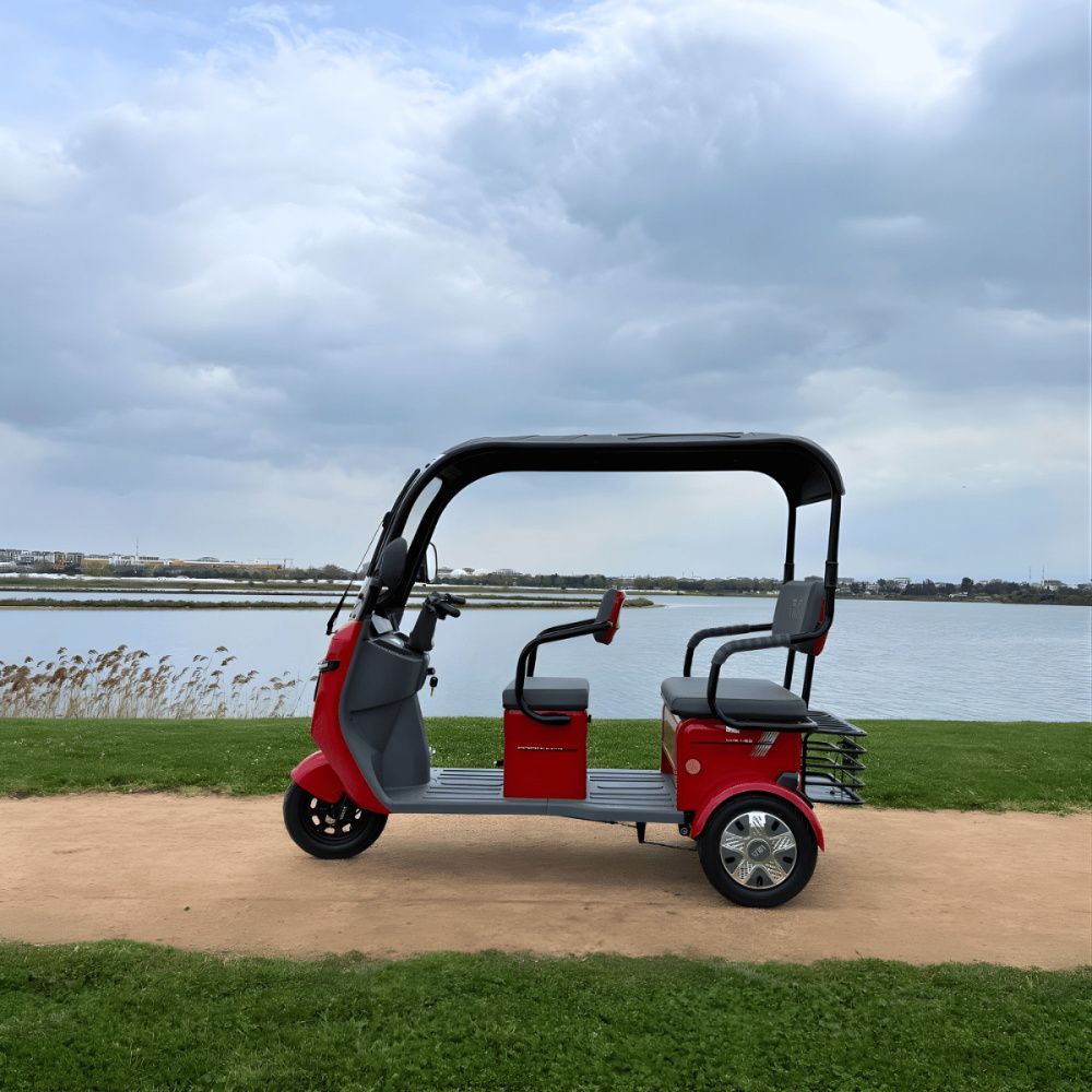 Motorleistung: 1.0 kW Homologation: 25 km/h 2-Personen-Zulassung, Sitze hintereinander Batterie: Blei-Gel, 72V 20AH Ladbar an jeder Haushaltssteckdose Gewicht: 202 kg Zuladung: 150 kg Rückwärtsgang LED-Beleuchtung Garantie Broschüre Handbuch