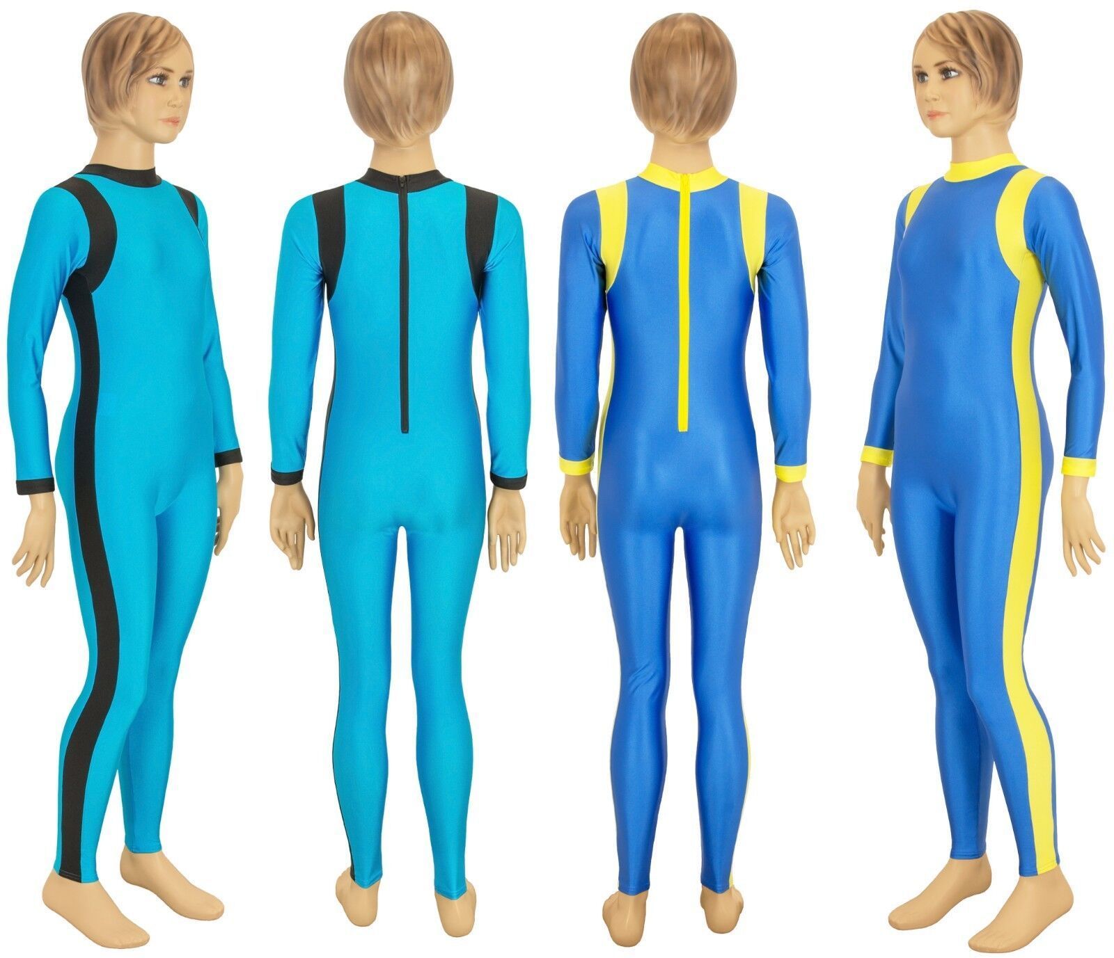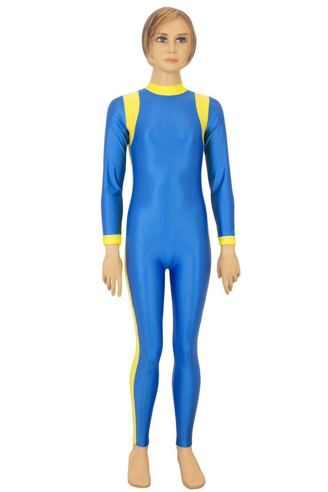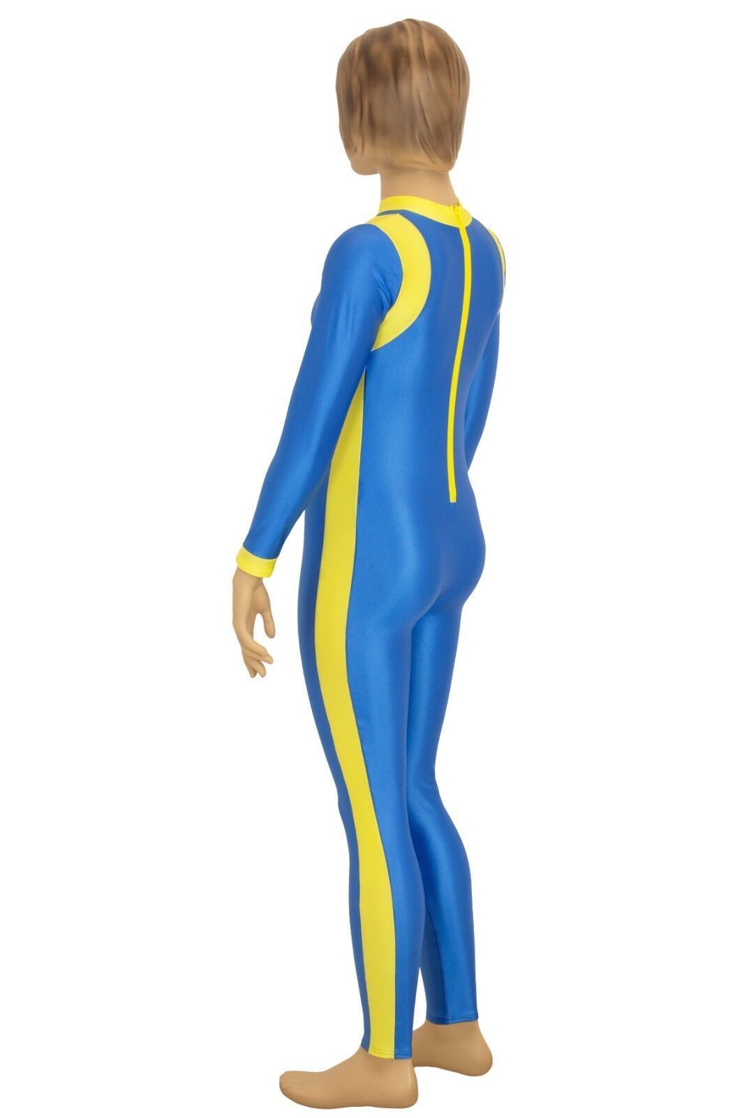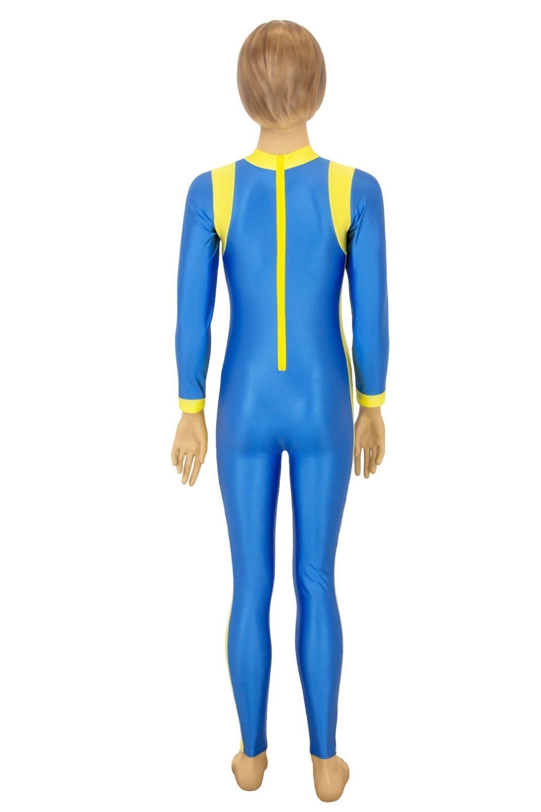 Ganzanzug, lange Ärmel und Beine, mit Kragen und Rückenreißverschluss. Material: 80% Polyamid, 20% Elasthan. Hoch elastisch und glänzend. Made in Germany, by us – ML-Sport24!