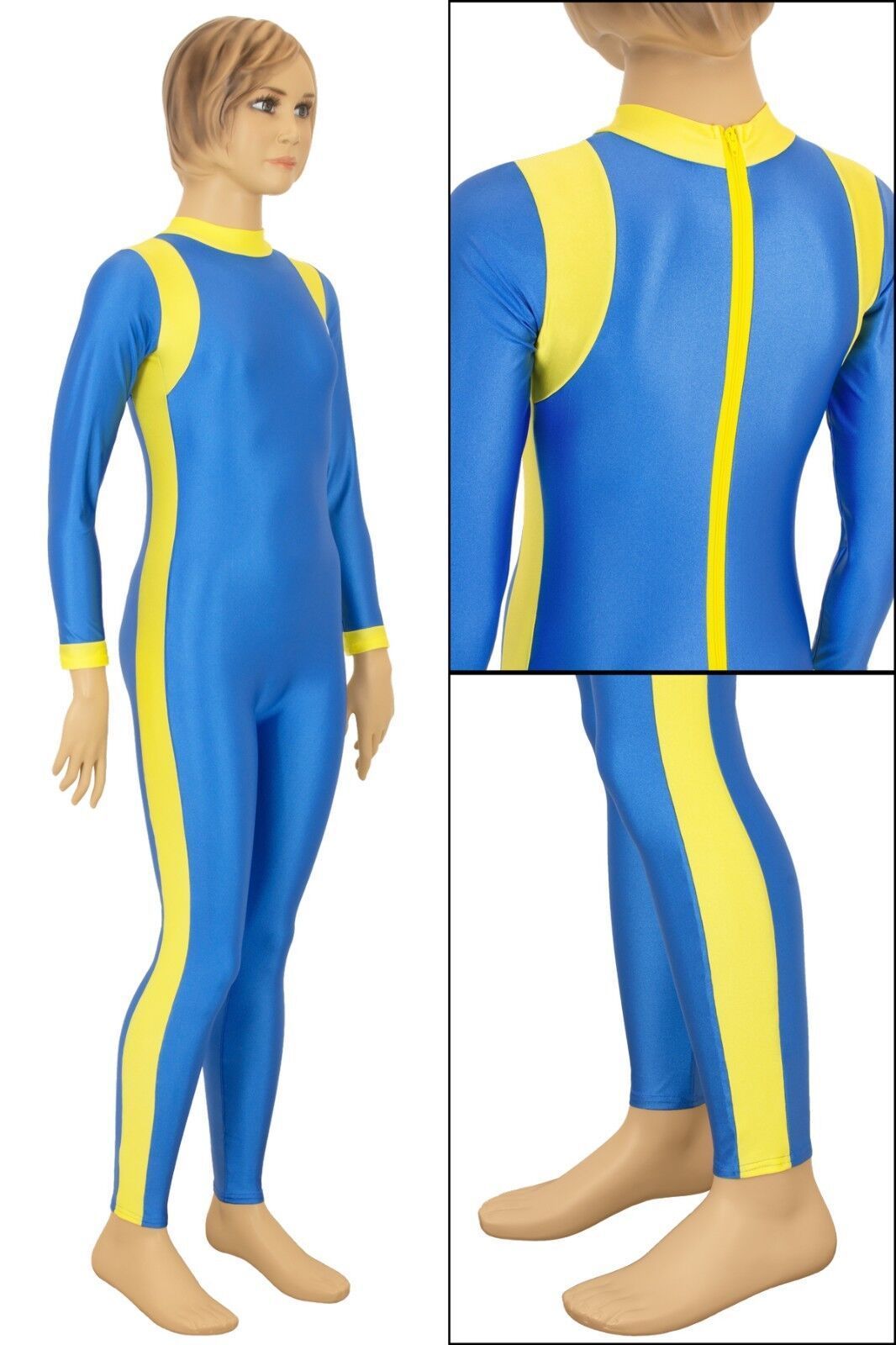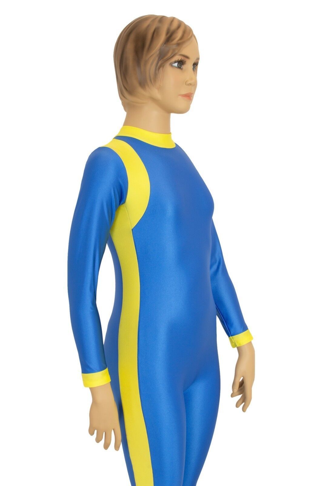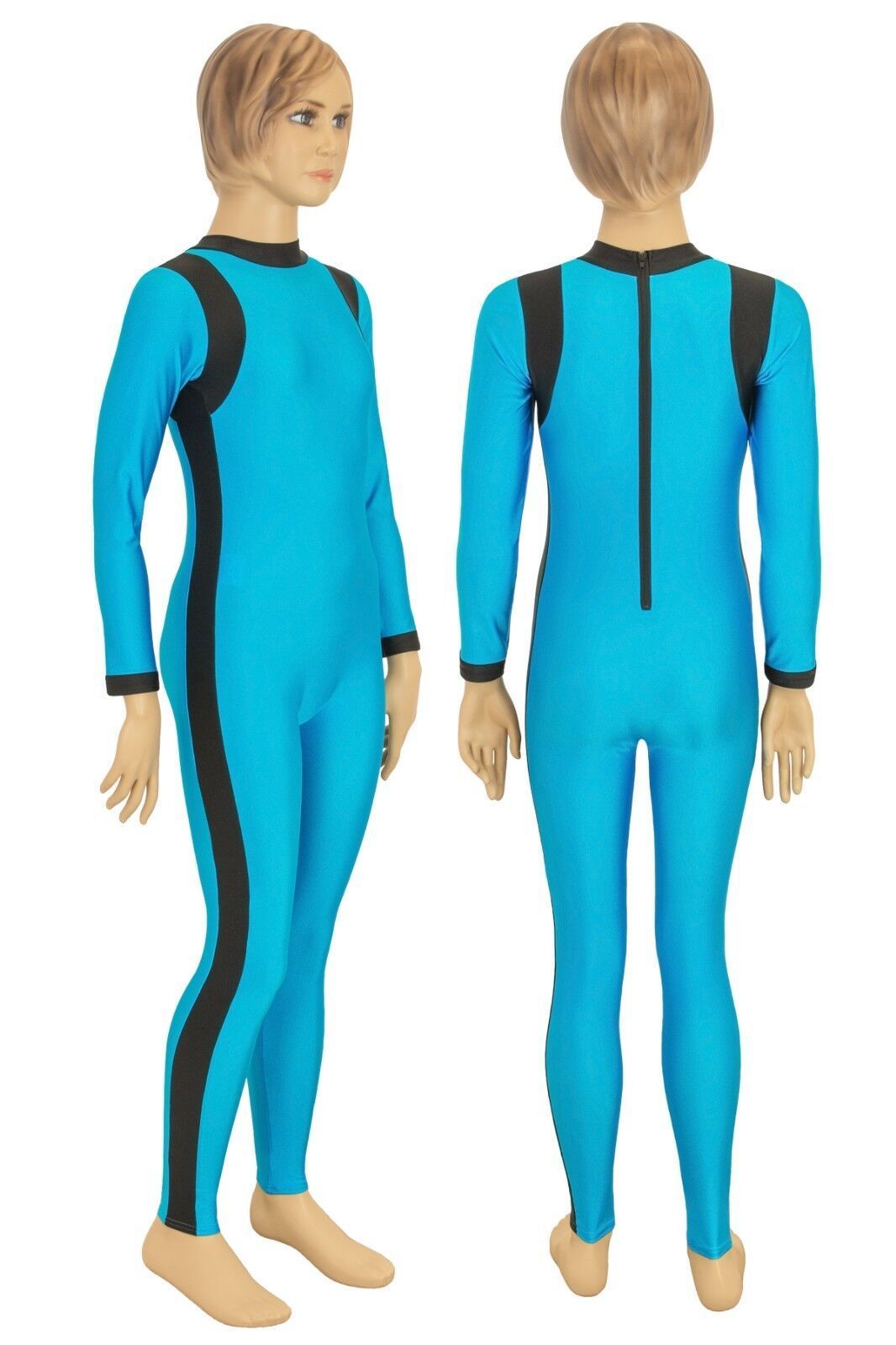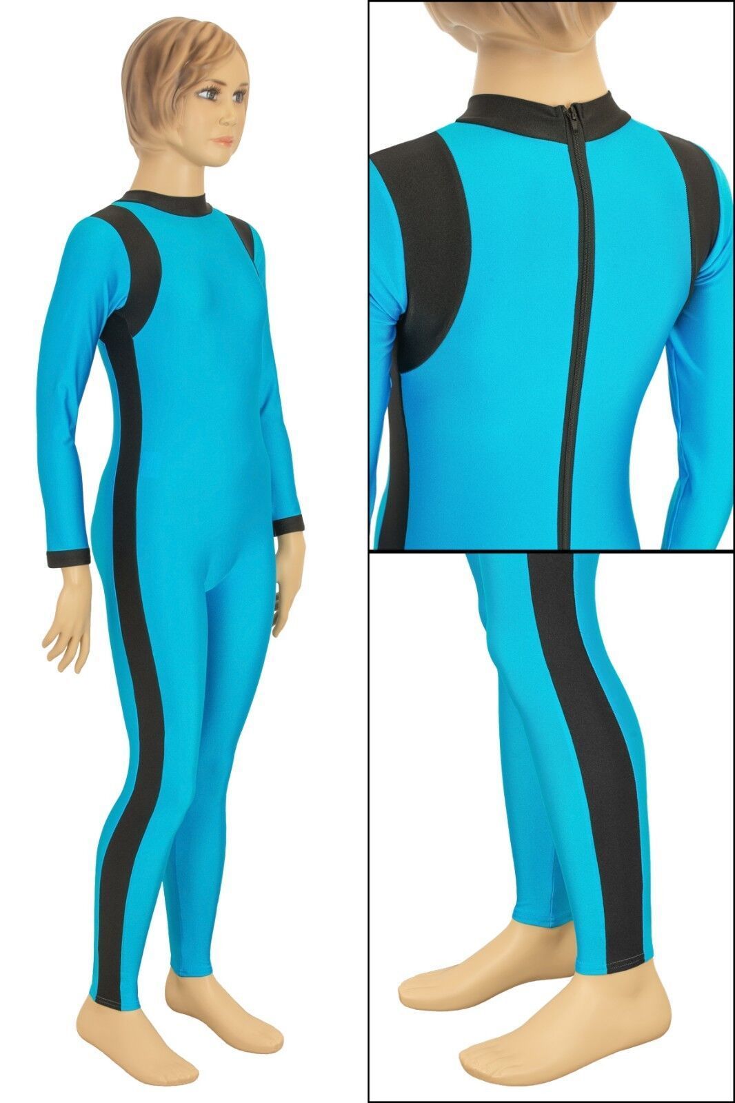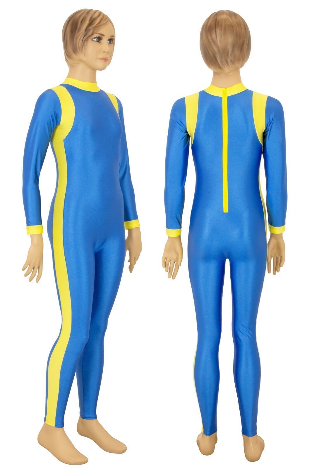 Ganzanzug, lange Ärmel und Beine, mit Kragen und Rückenreißverschluss. Material: 80% Polyamid, 20% Elasthan. Hoch elastisch und glänzend. Made in Germany, by us – ML-Sport24!