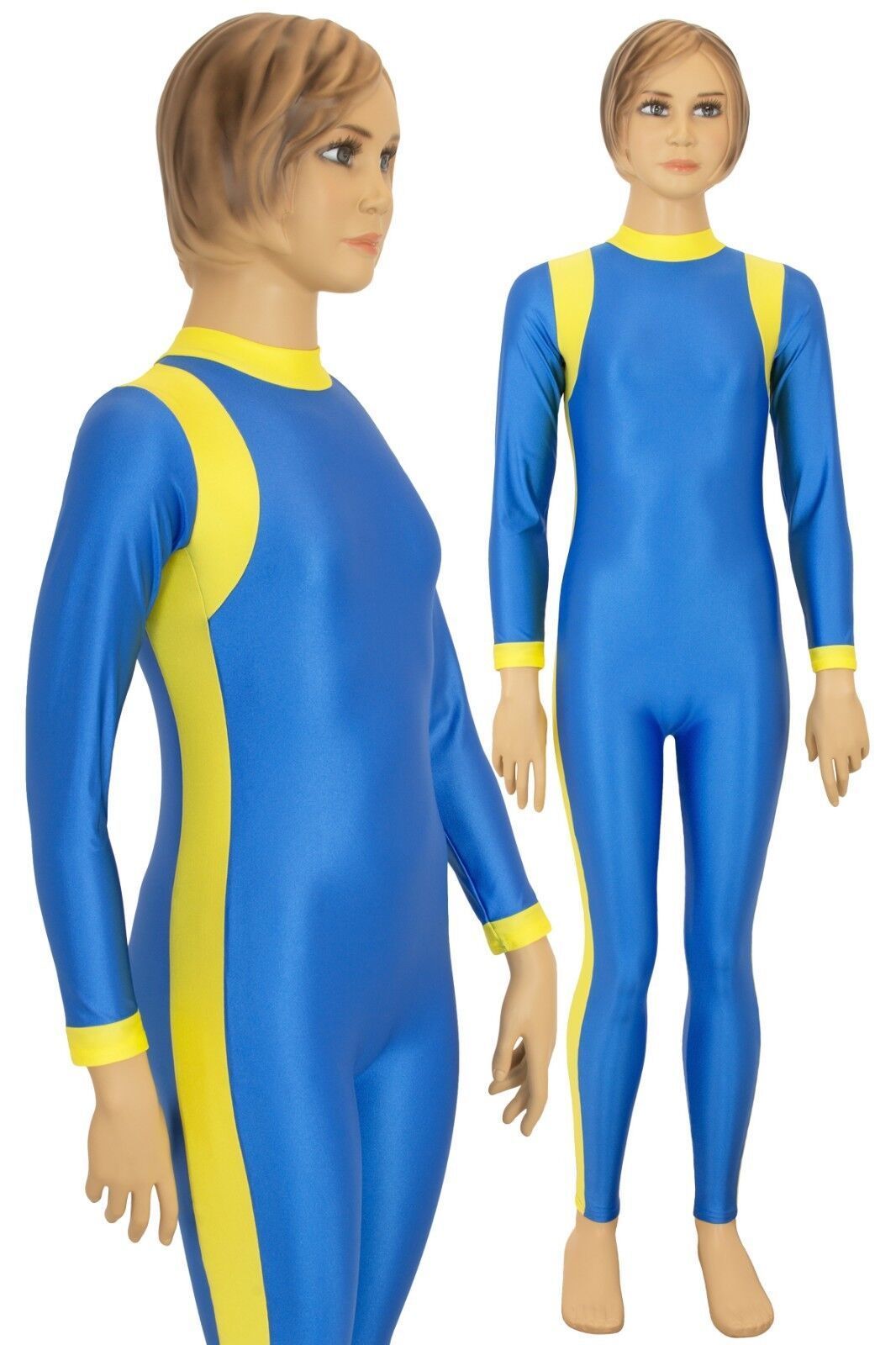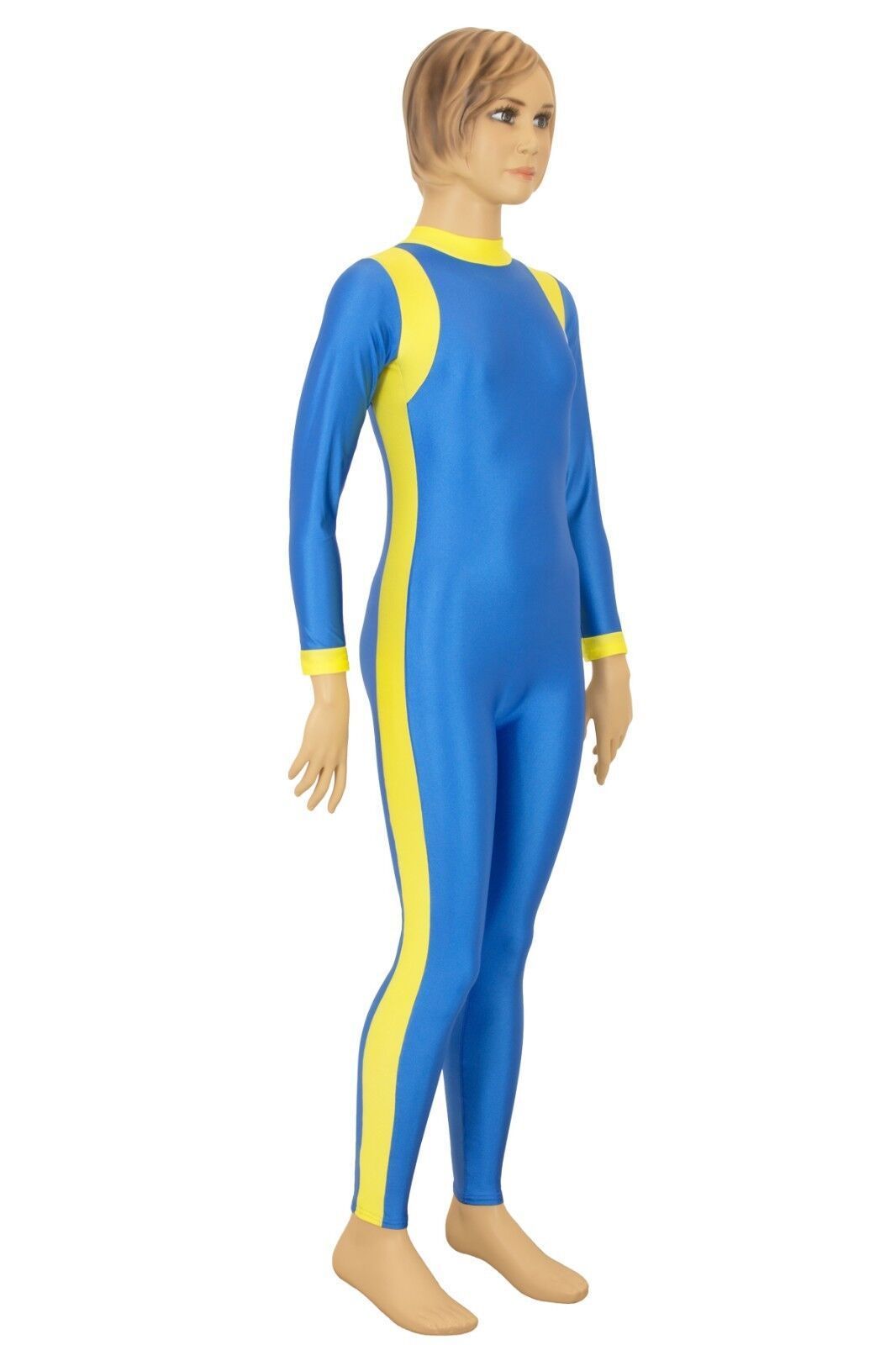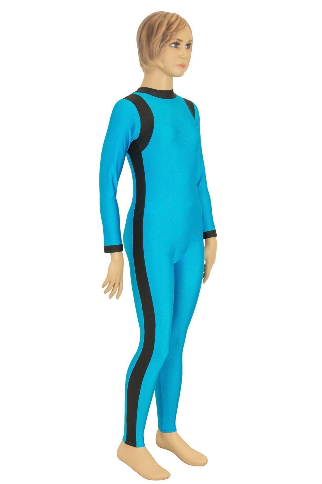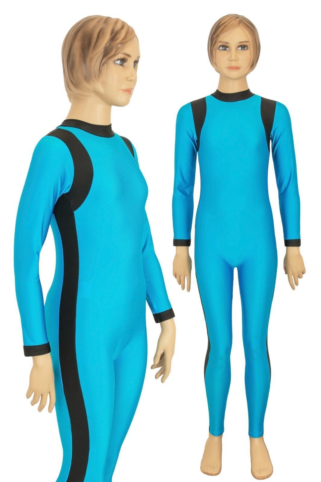 Ganzanzug, lange Ärmel und Beine, mit Kragen und Rückenreißverschluss. Material: 80% Polyamid, 20% Elasthan. Hoch elastisch und glänzend. Made in Germany, by us – ML-Sport24!