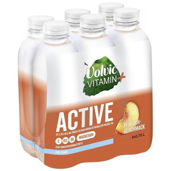 Volvic Vitamin+ Active Pfirsich 0.75 L Flasche 6er Pack ( 6x0,75L ) Einweg-Pfand