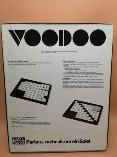 Voodoo Parker Denk-und Taktikspiel 1977 für 2 Spieler vollständig. Zustand: Gebraucht . Ein unkompliziertes Denkspiel mit vielen taktischen Möglichkeiten. Das Spiel ist vollständig. Der Karton hat ein paar Gebrauchsspuren. Siehe Bilder. Wir bieten kostenlosen Blitzversand und es wird gut verpackt! V