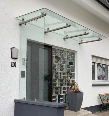 Glasvordach Edelstahl Vordach Türvordach Überdachung Haustür VSG 13 mm Zugstreben
