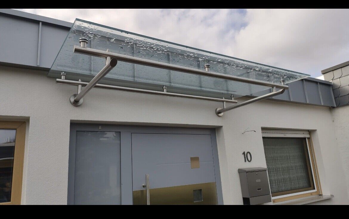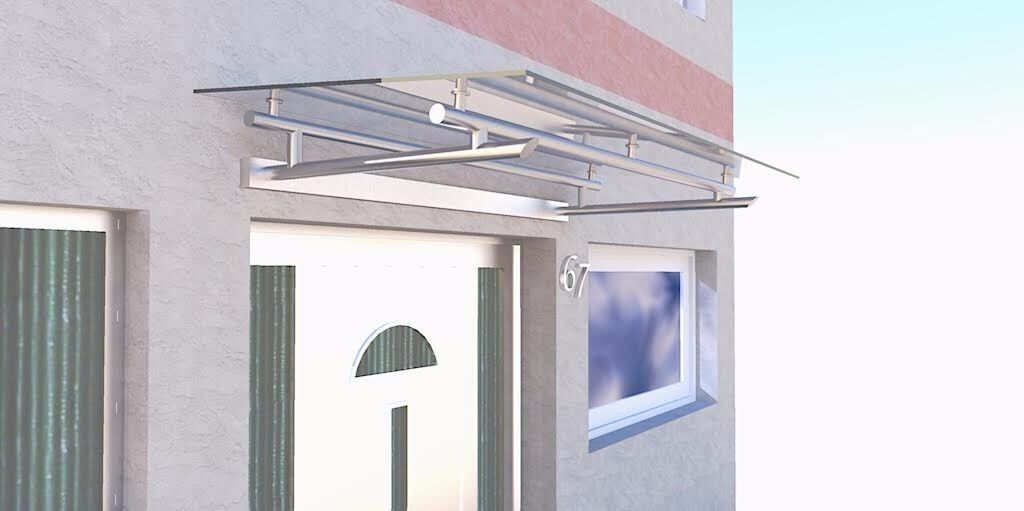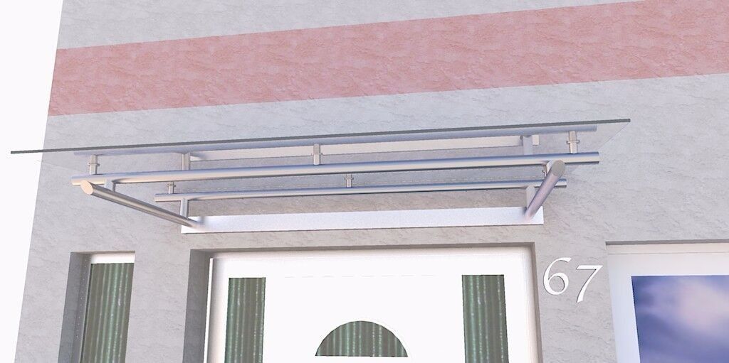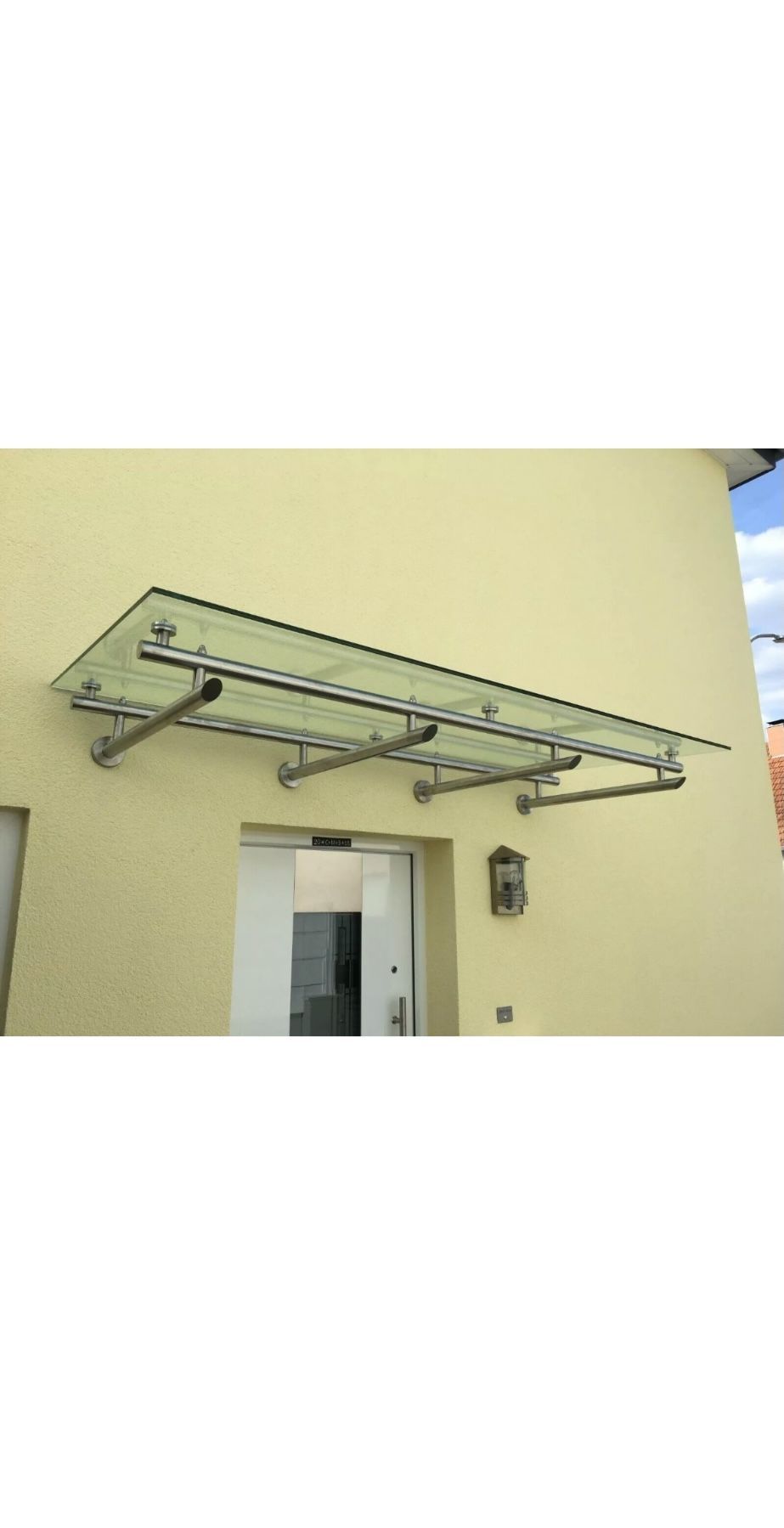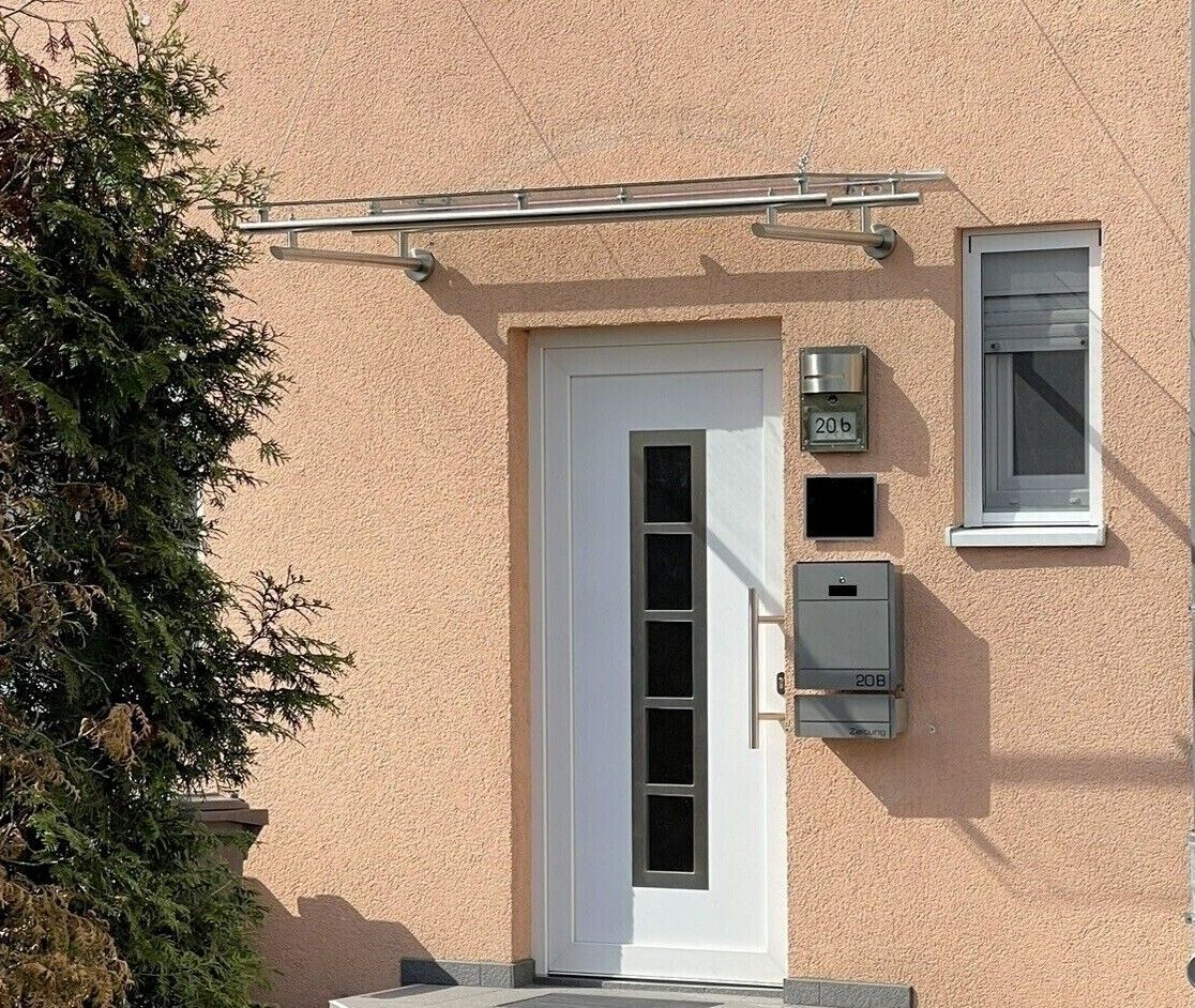 Vordach aus Edelstahl Modell Elegance mit VSG-TVG Türvordach Wetterschutz Überdachung
