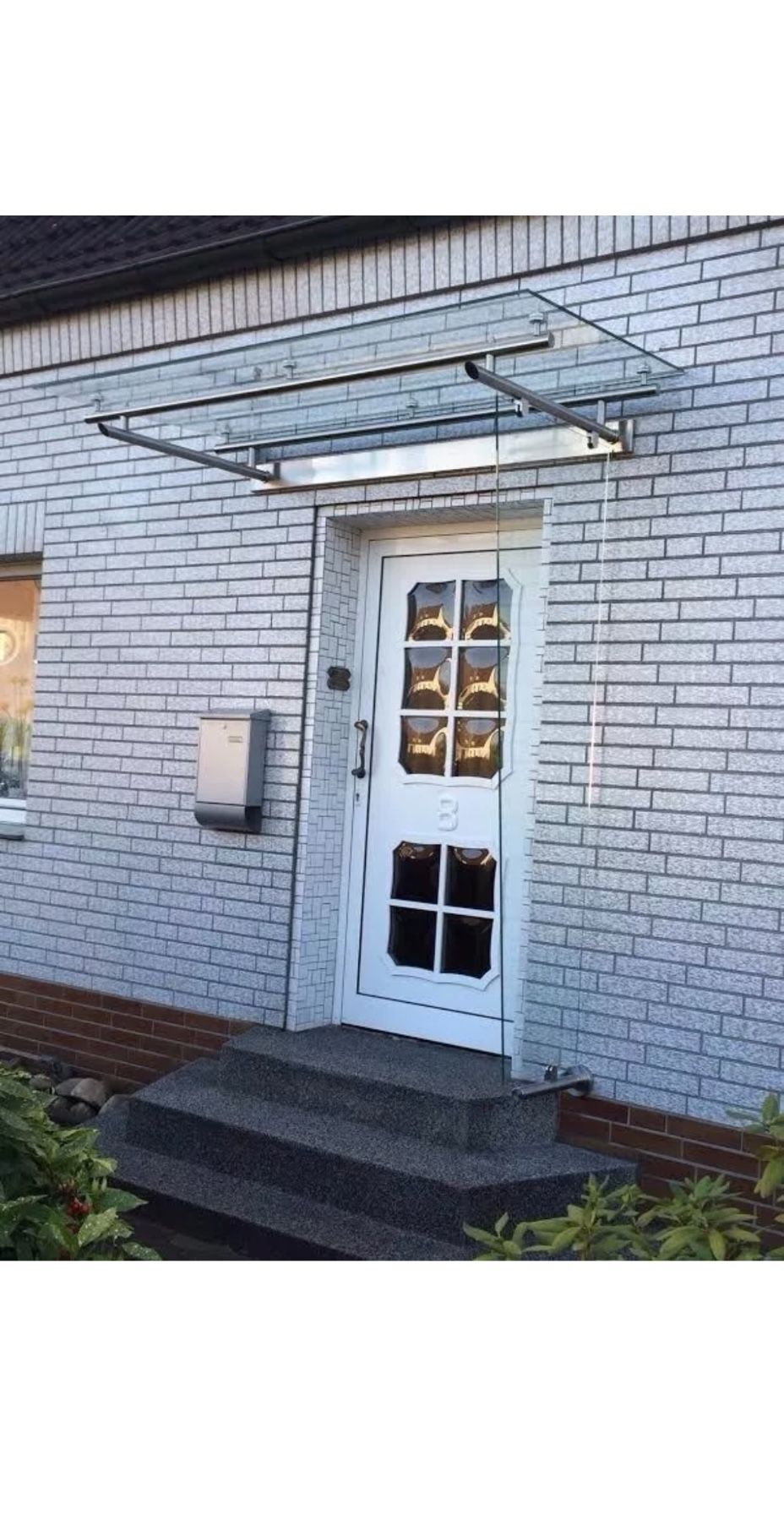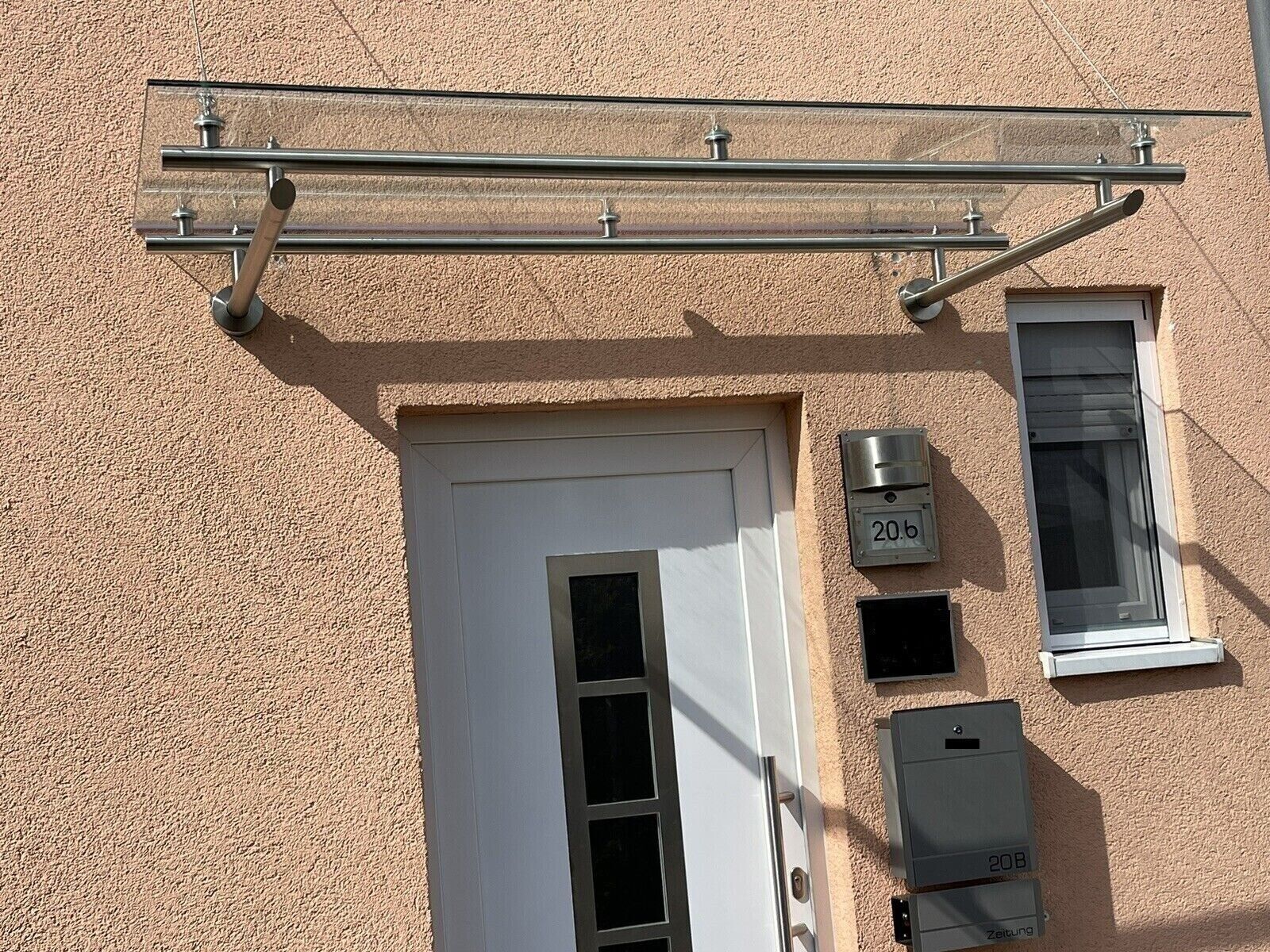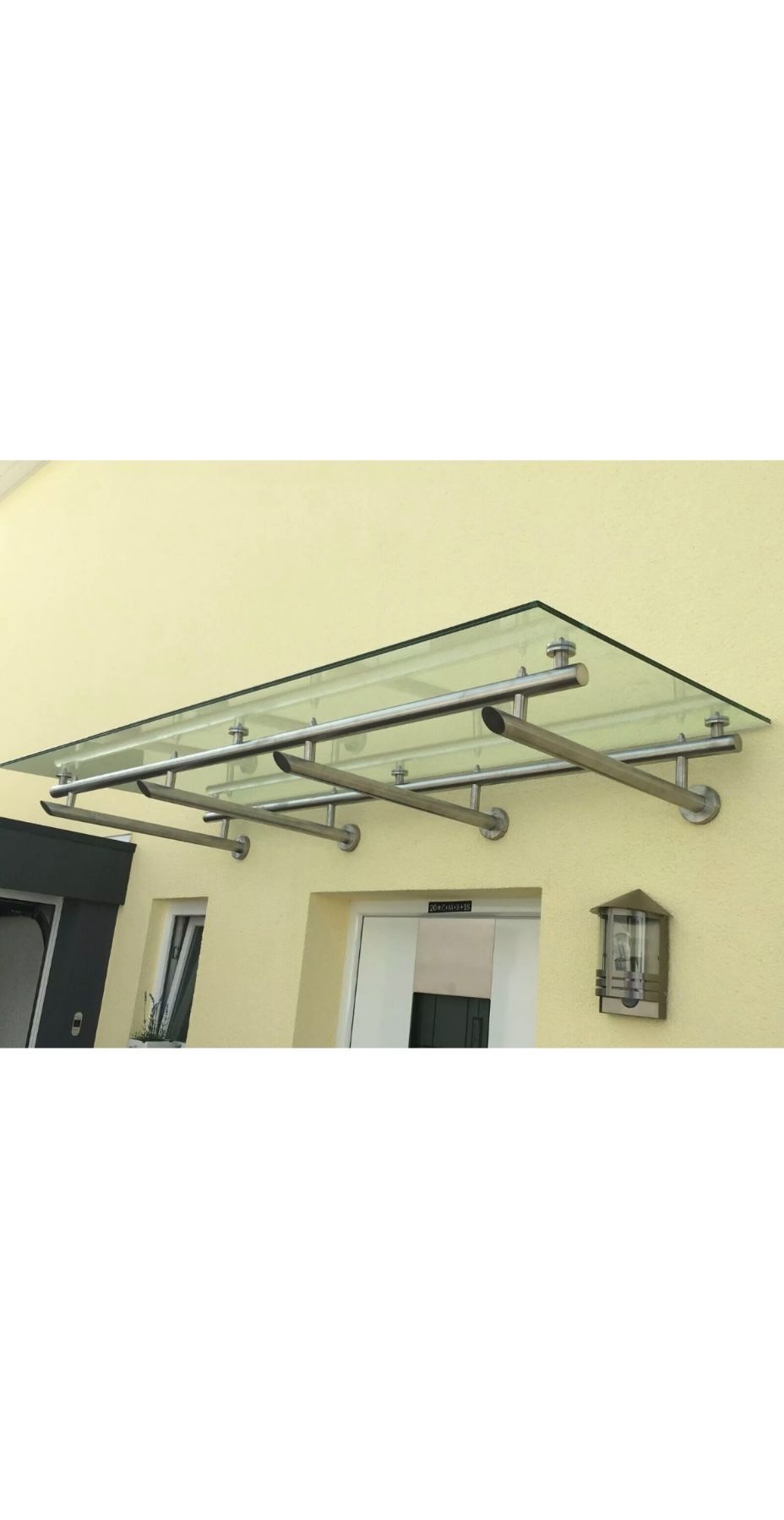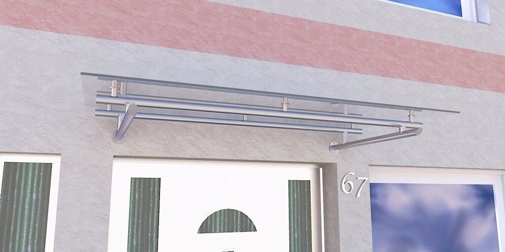 Vordach aus Edelstahl Modell Elegance mit VSG-TVG Türvordach Wetterschutz Überdachung