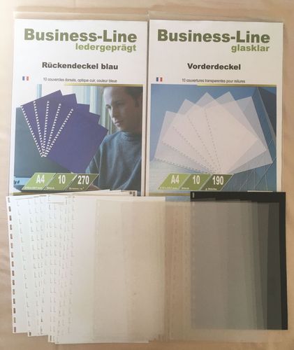 Vorderdeckel A4+A5 für Spiralbindung, Konvolut 33 Stk. Wurde auch bei Ebay-Kleinanzeige eingestellt ( 2525427854) Wer braucht schon 100 Stück, oft sind kleine Stückzahlen gewünscht. 5 Stk. glasklare Vorderdeckel A4 190my für Spiralbindung, NEU 4 Stk. Rückendeckel blau A4 270g ledergeprägt Plastikbin