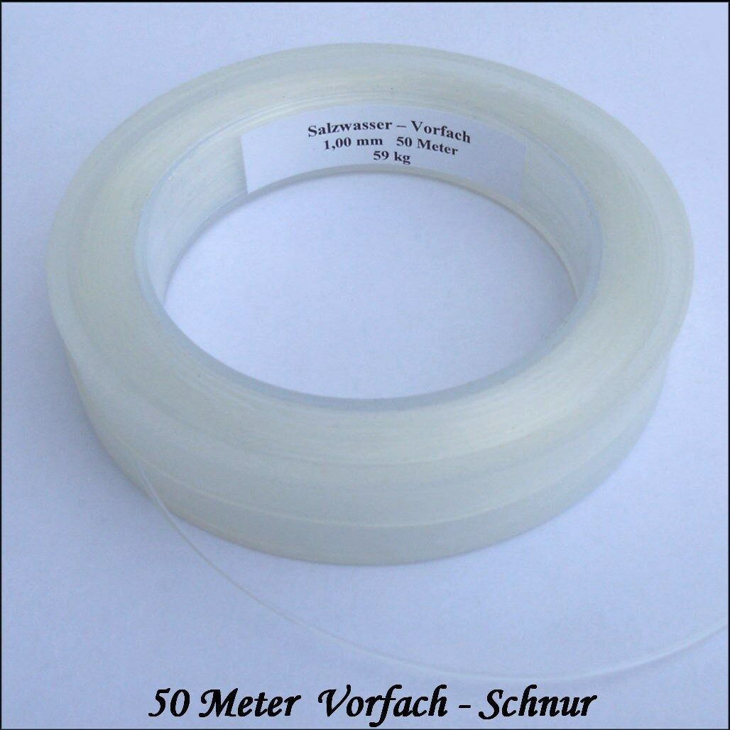 Vorfachmaterial Salzwasser-Vorfach 50m Spule 1,20mm 79kg Farbe: Natur Spenderspule: 50m Ein extra starkes reis- und bissfestes sowie nahezu unsichtbares Vorfachmaterial ist oft der Schlüssel zum Erfolg. Ideal für das Anfertigen von Paternoster, Seitenarme, Vorfächer oder auch Schlagschnüre für den M
