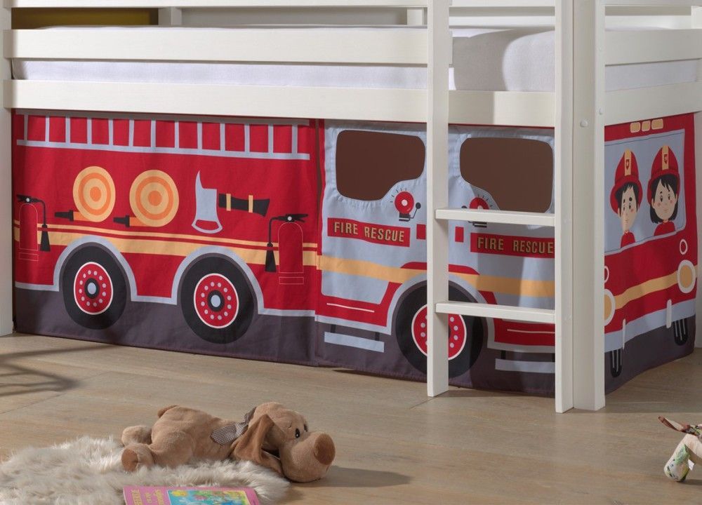 VIPACK Vorhangset Spielbettvorhang Kinderbettvorhang Textilset Bettgardine Feuerwehr