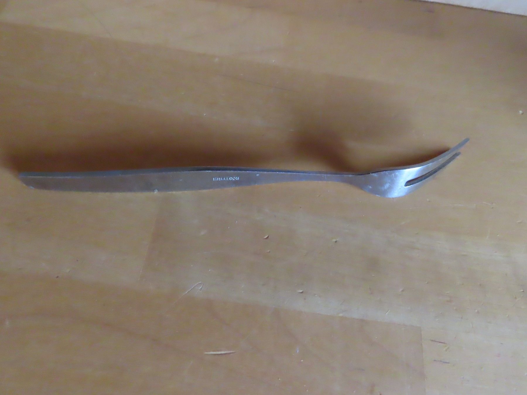 Maße ca.18,7 cm lang x ca. 1,8 cm breit--immer die breiteste Stelle gemessen Die Gabel ist ca. 4 cm x ca. 1,8 cm breit Der Griff ist ca. 13 cm lang Material: Metall magnetisch ist leicht verschmutzt und hat feine Kratzer... Mehr