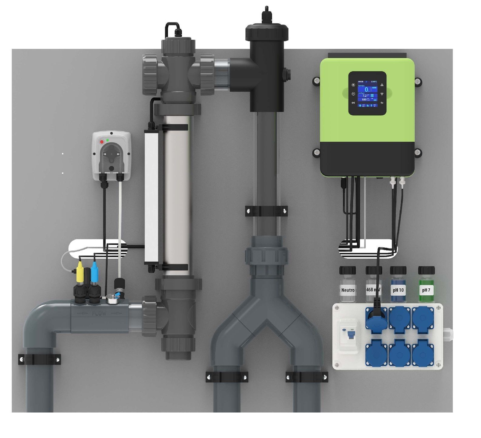 Vormontierte Pooldesinfektionsanlage Salzelektrolyse/ pH / UV-C