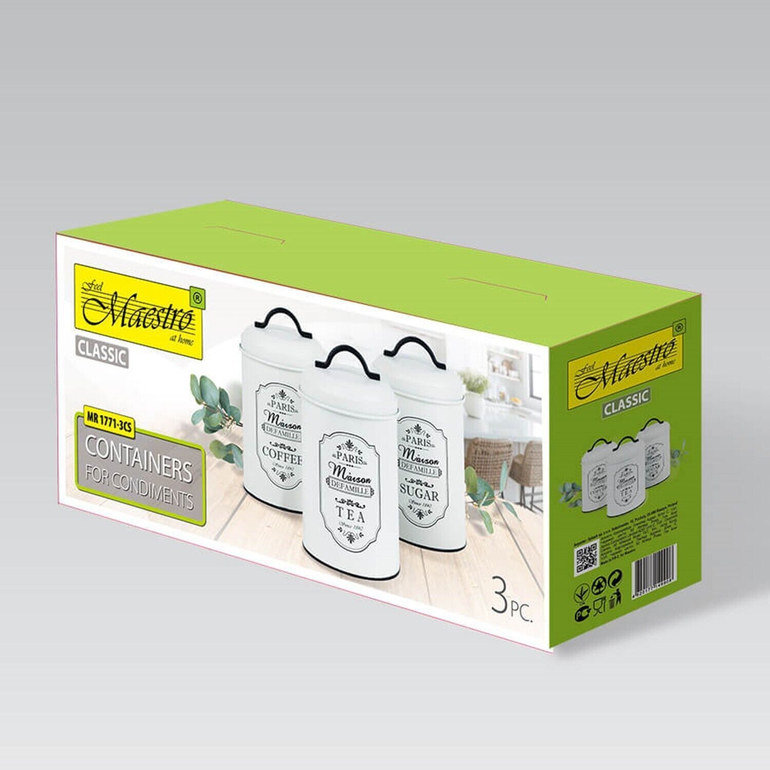 Maestro Vorratsdosen Set Aufbewahrungsdosen Küchenbehälter 3er Set Weiß