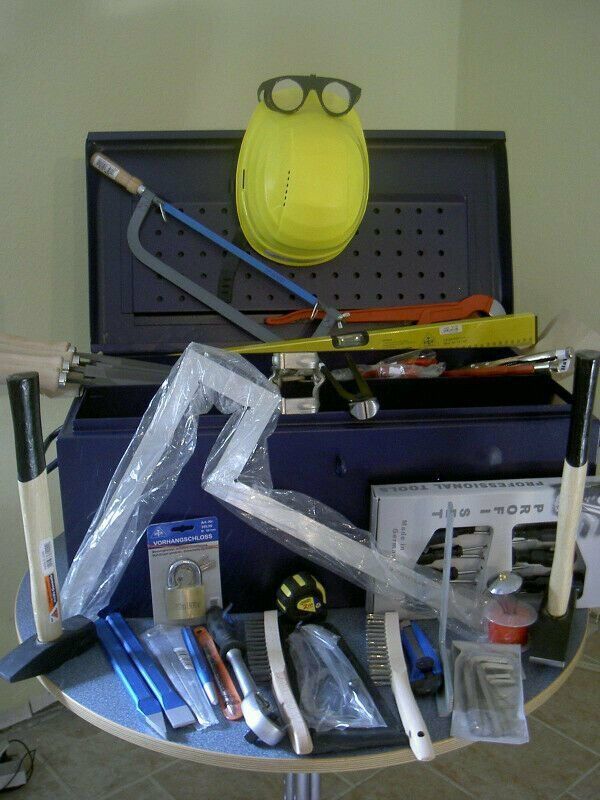 Vorrichterkiste Werkzeugkiste Stahlblech mit Inhalt + Elektrowerkzeuge von Bosch