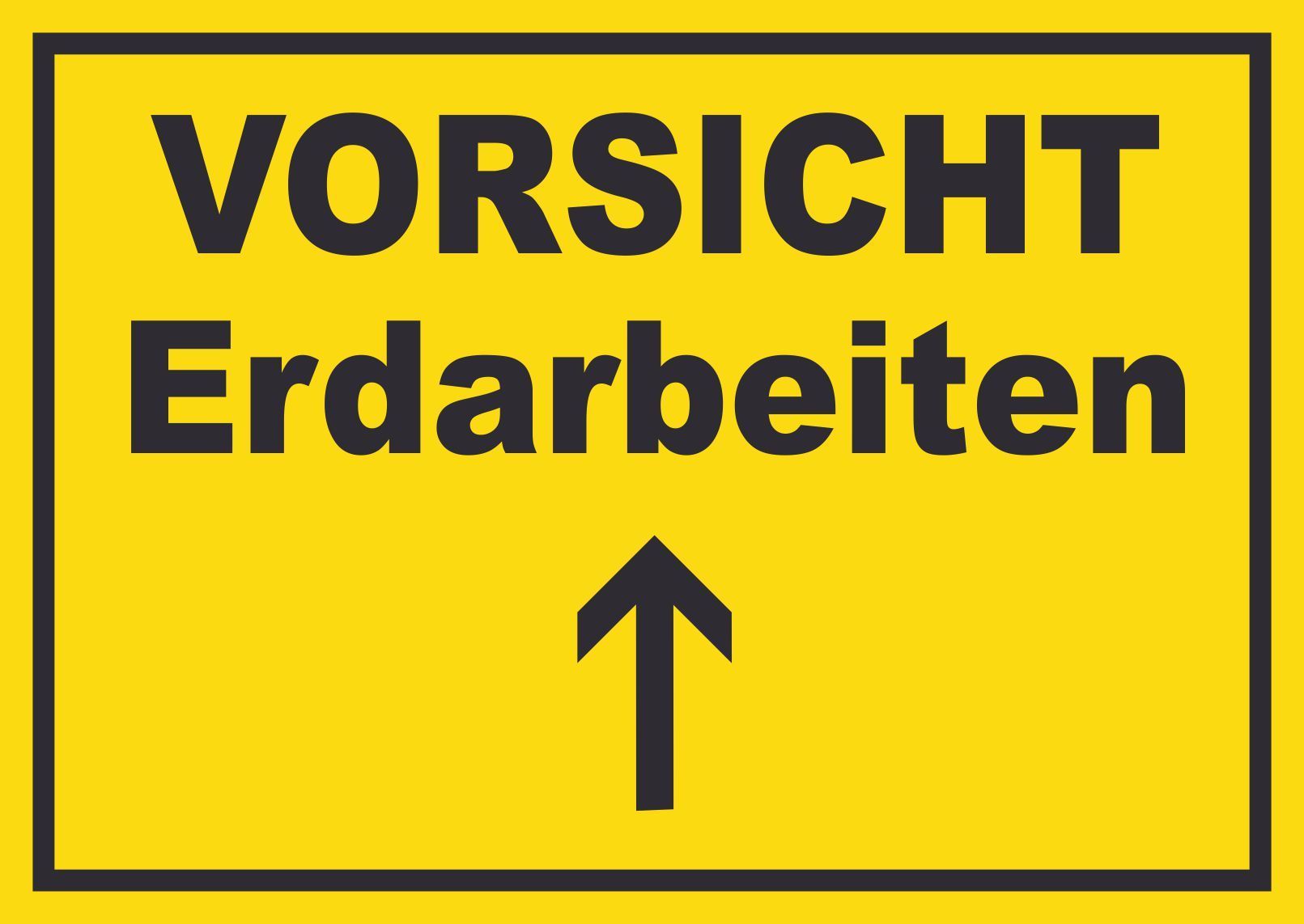 Vorsicht Erdarbeiten mit Richtungspfeil oben Schild