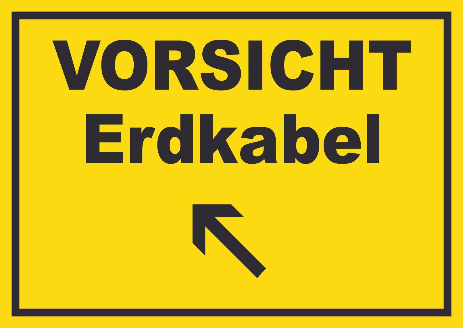 Vorsicht Erdkabel mit Richtungspfeil links oben Schild