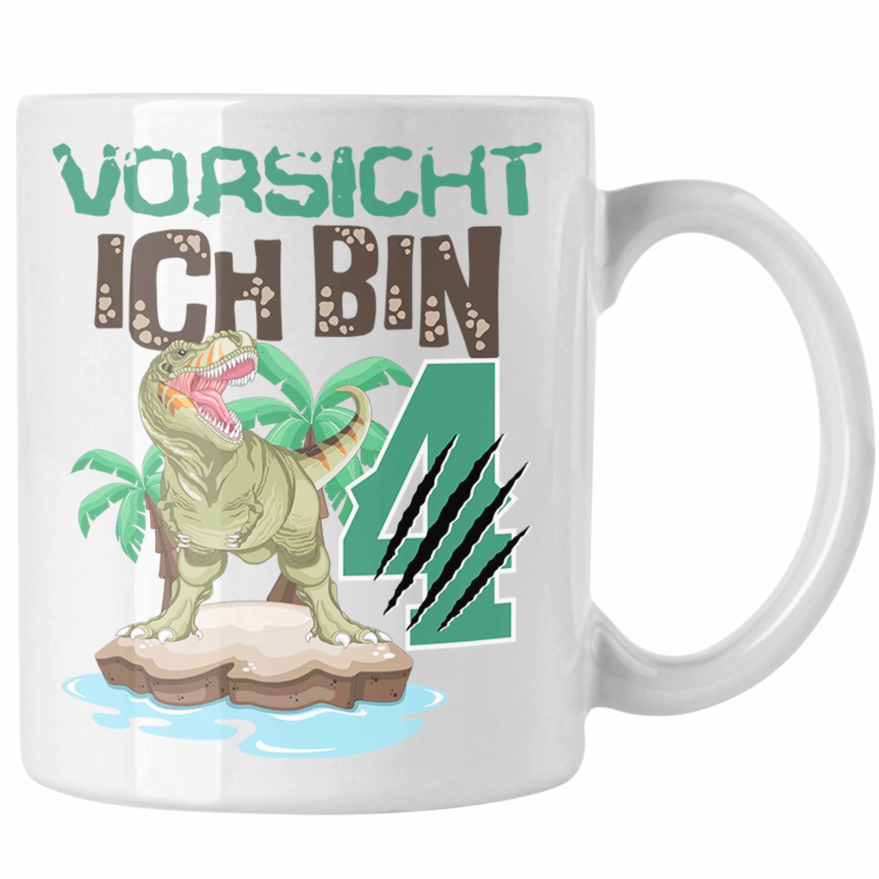Vorsicht Ich Bin 4 Geschenk 4er Geburtstag Geschenkidee Jungs Dinosaurier Tasse Beche